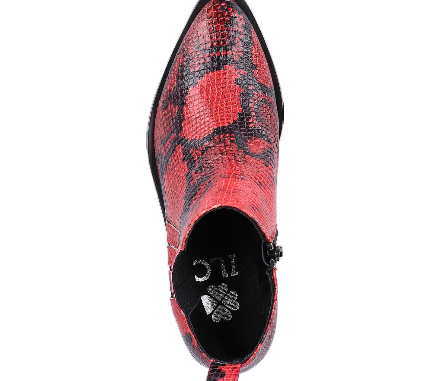ILC Damen Stiefel elegante Echtleder-Stiefelette Absatz-Schuhe mit Allover-Muster 514513 Rot/Schwarz