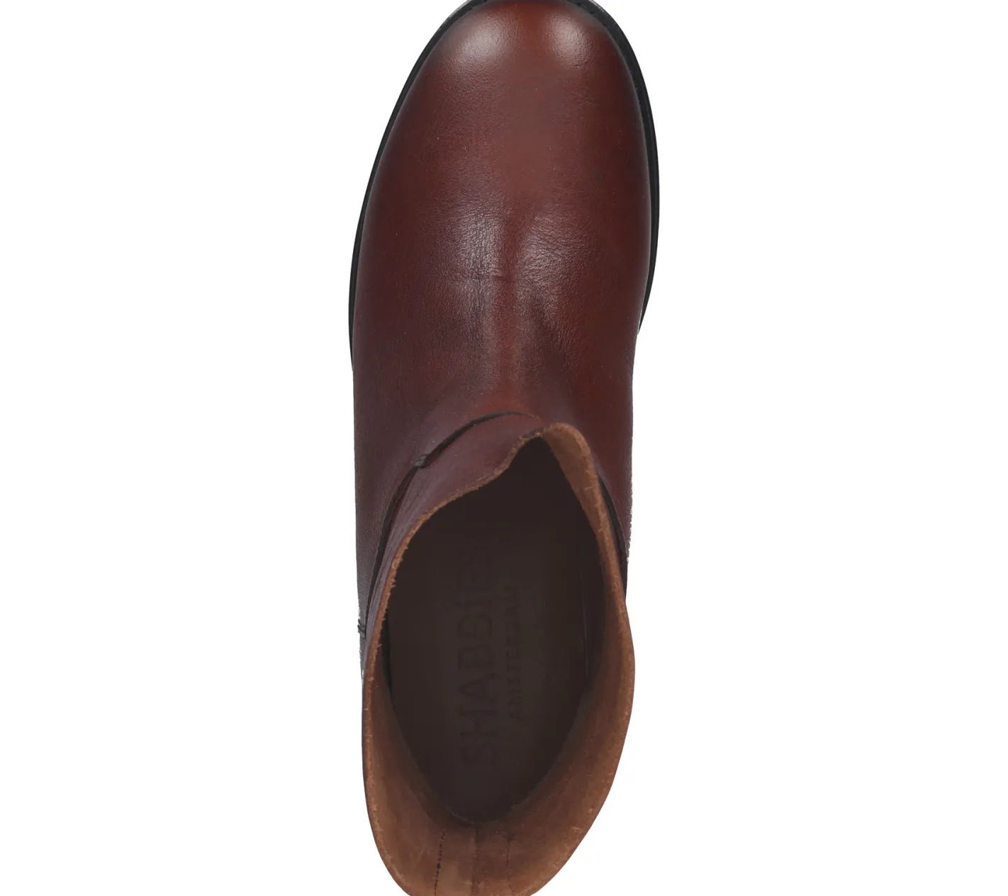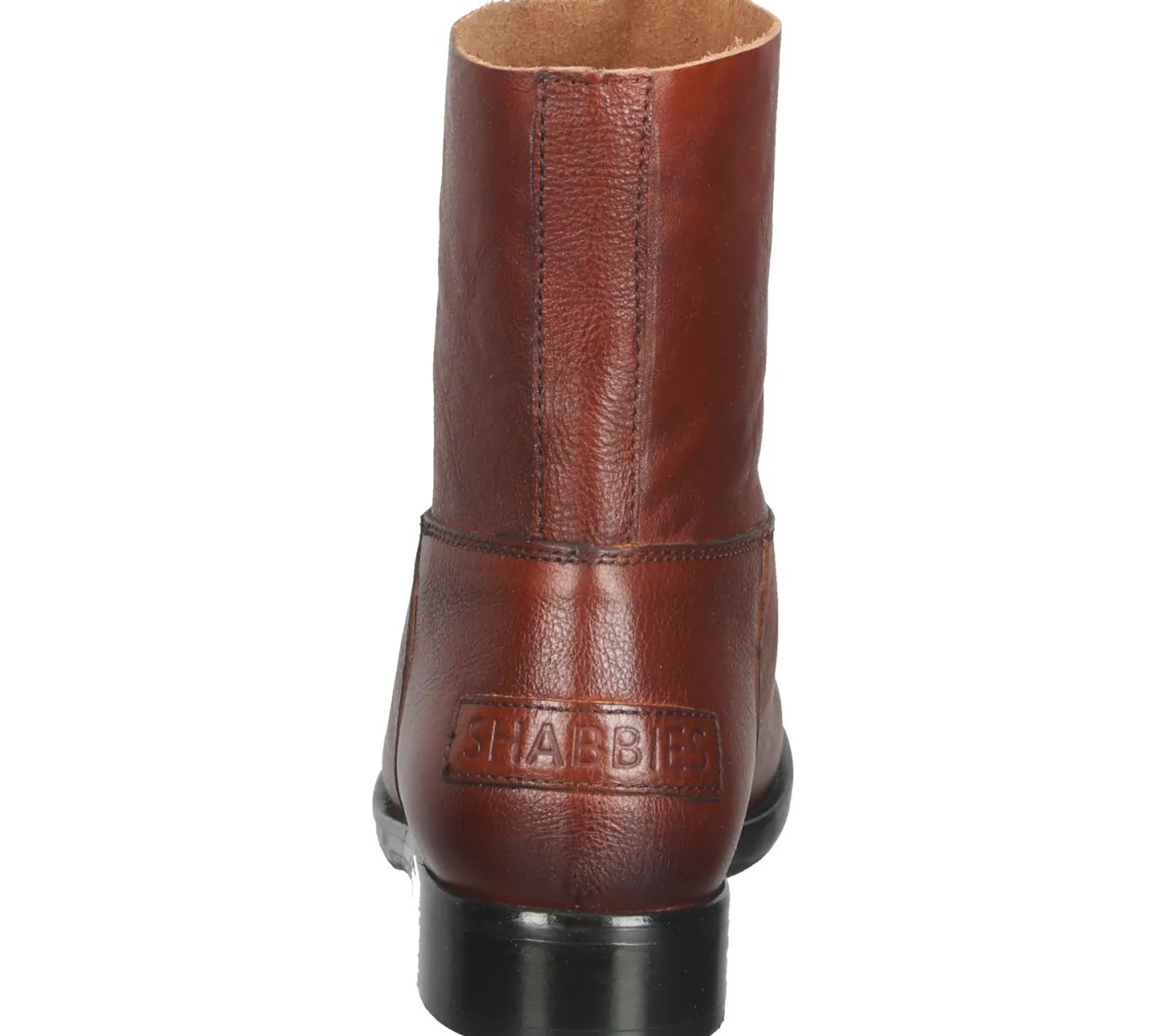 SHABBIES Amsterdam Damen Echtleder Schlupf-Stiefelette rustikale Herbst-Schuhe 181020174 Cognac-Braun