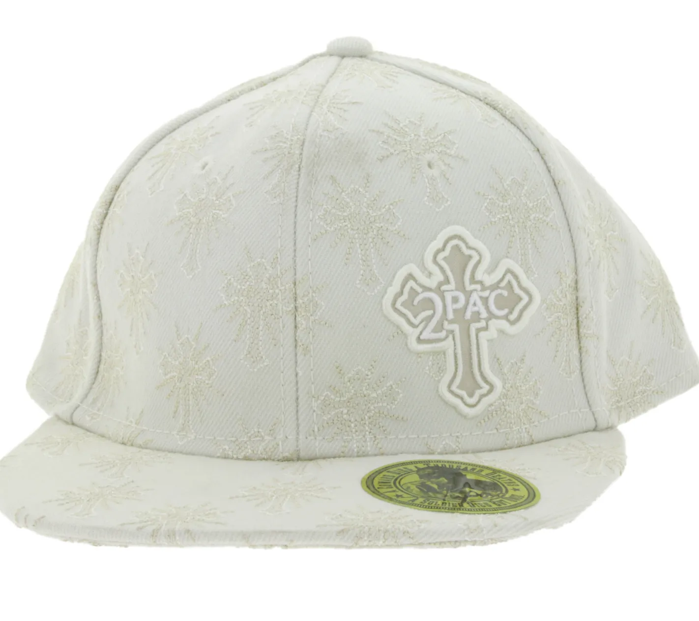 2PAC Snapback-Cap mit Stickmuster & Kreuz-Emblem Limited Streetwear Edition TC108767TUP3 Creme-Weiß