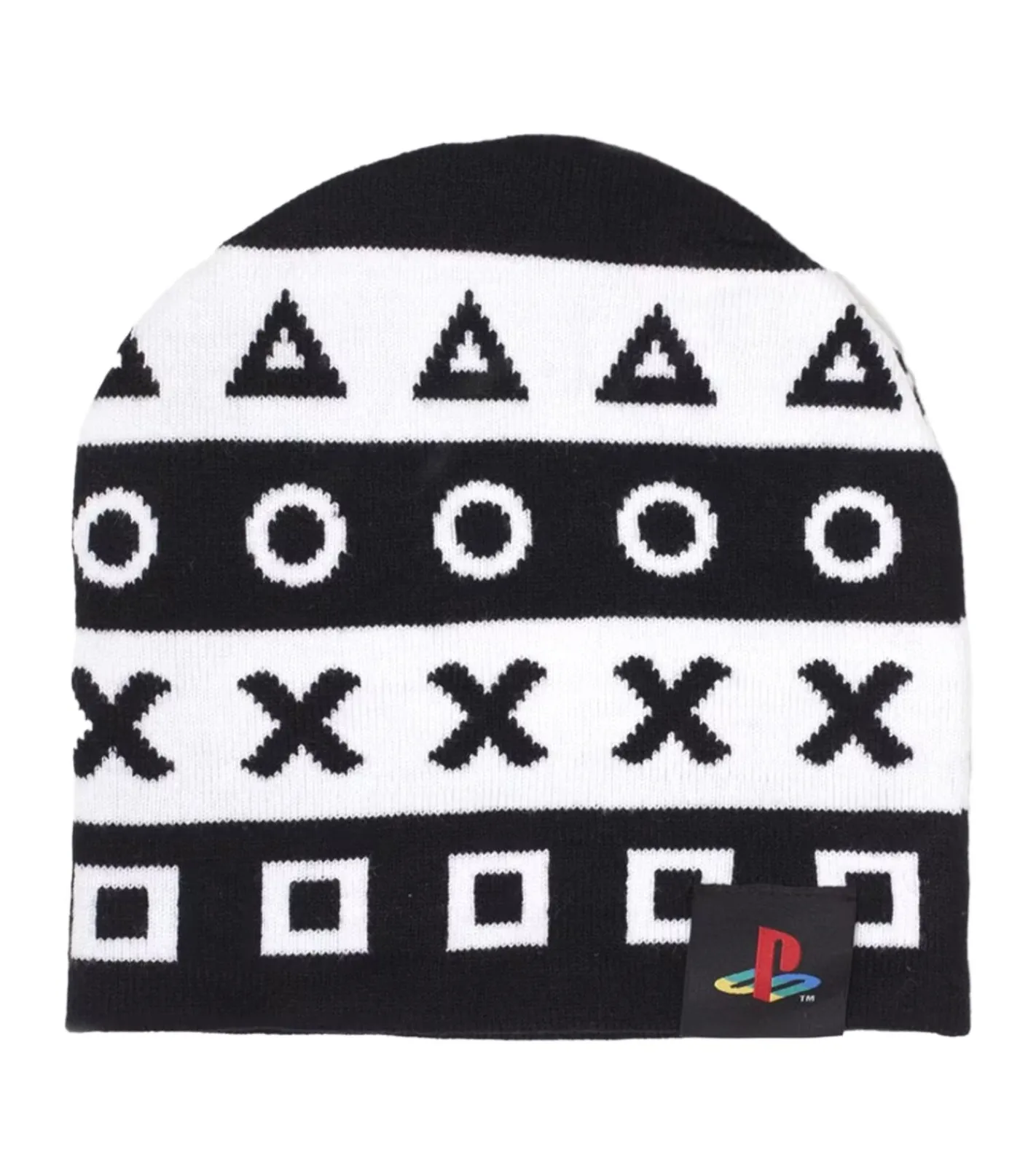 PlayStation Beanie mit Playstation Symbole Gaming-Mütze Strick-Beanie Fan-Artikel KC042612SNY Schwarz/Weiß