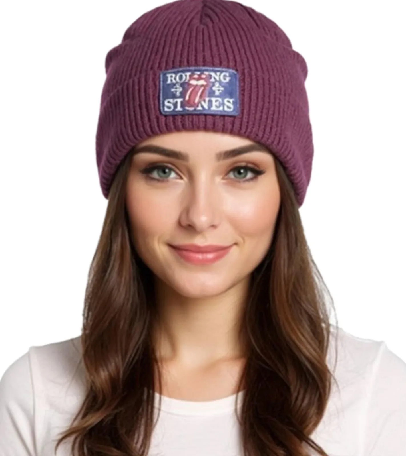 Rolling Stones Beanie kuschelige Frühlings-Mütze gemütlicher Strick-Beanie Fan-Artikel KC100589RST Weinrot/Blau