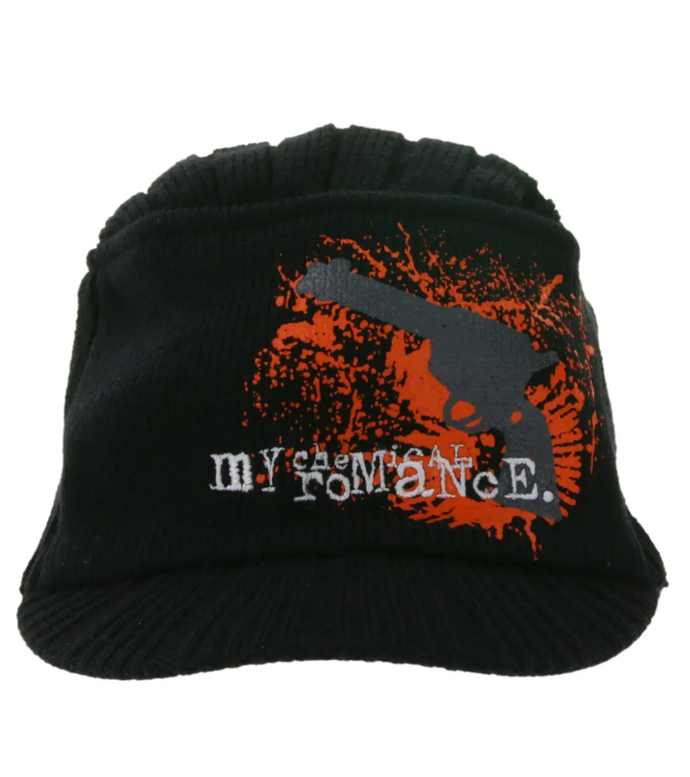 Unisex Schirm-Mütze mit „My Chemical Romance“ Schriftzug Schirm-Beanie Freizeit-Mütze KC1012411MCR Schwarz/Rot