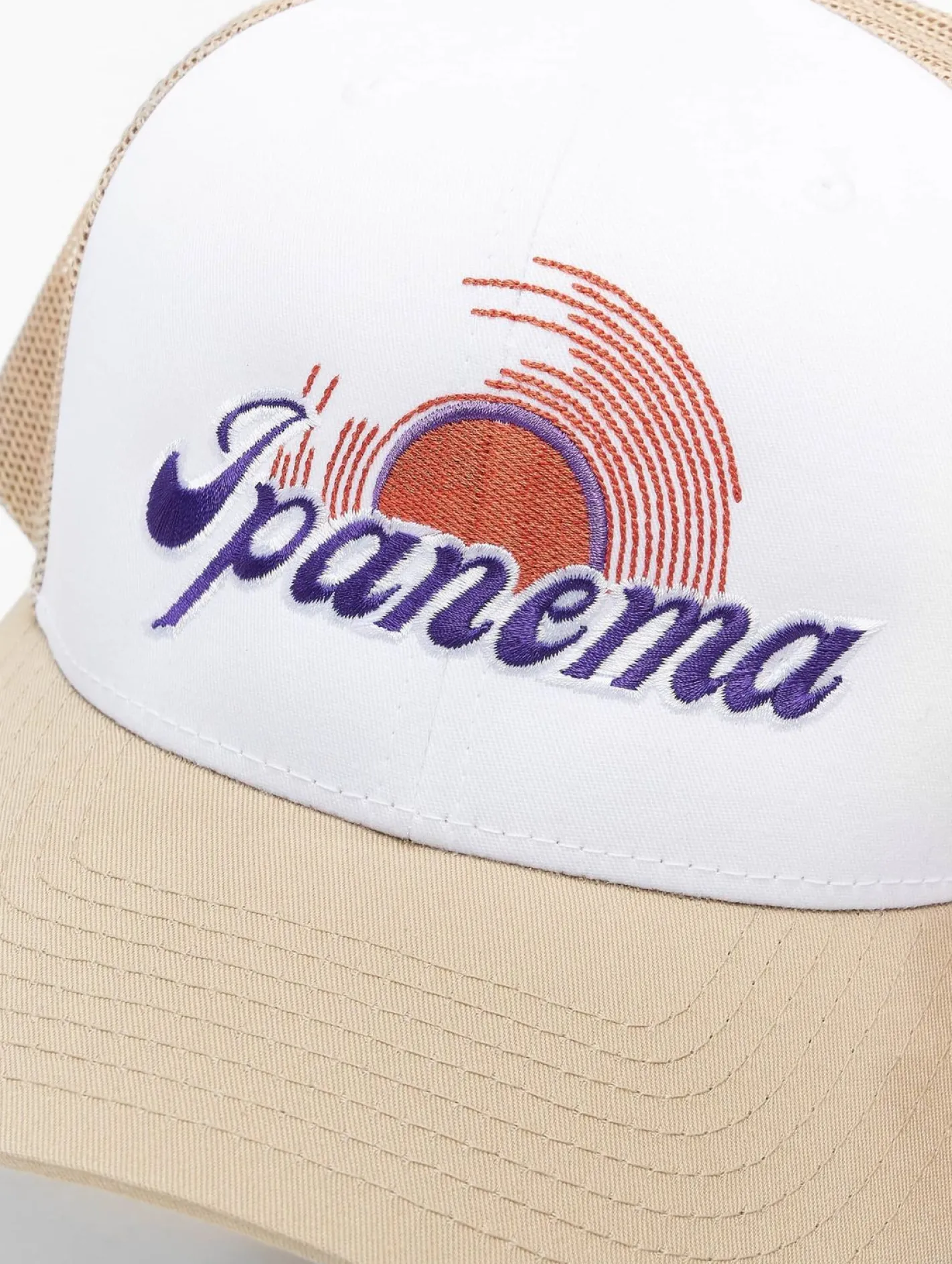 DWD Unisex Ipanema Trucker-Cap mit großer Stickerei Sommer-Cap für Damen oder Herren Hell-Beige