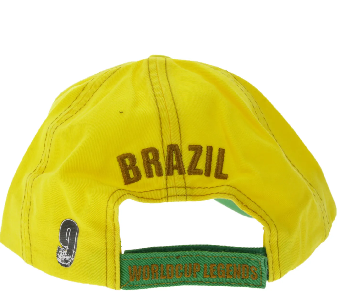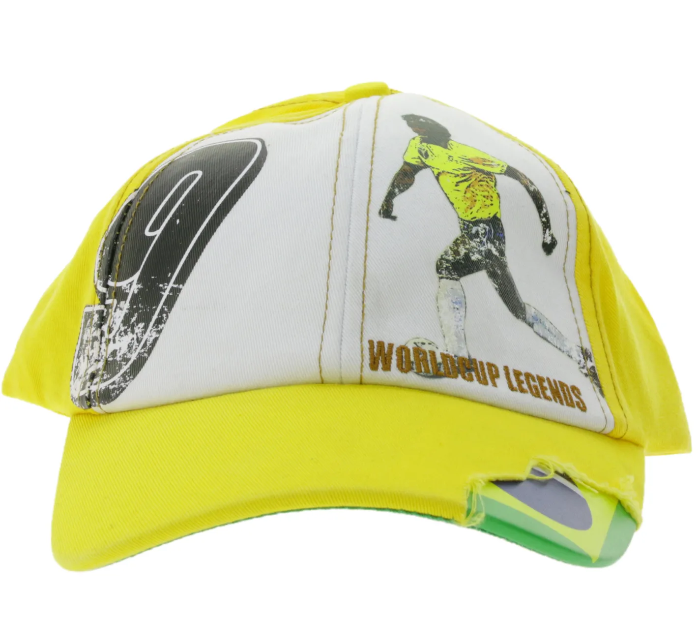WORLDCUP LEGENDS Unisex Baseball-Cap im Brasilien-Design Baumwoll-Cap mit Fußballspieler-Print Curved-Brim-Cap mit No.9-Print Damaged-Look TC123027WCL Gelb/Bunt