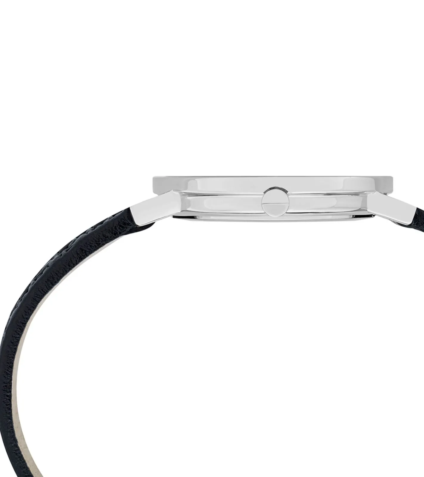 Pierre Cardin Damen Armband-Uhr mit Marken-Kürzel-Print analoge Quarz-Uhr mit Leder-Armband 3ATM 31mm CBV.1502 Schwarz/Silber