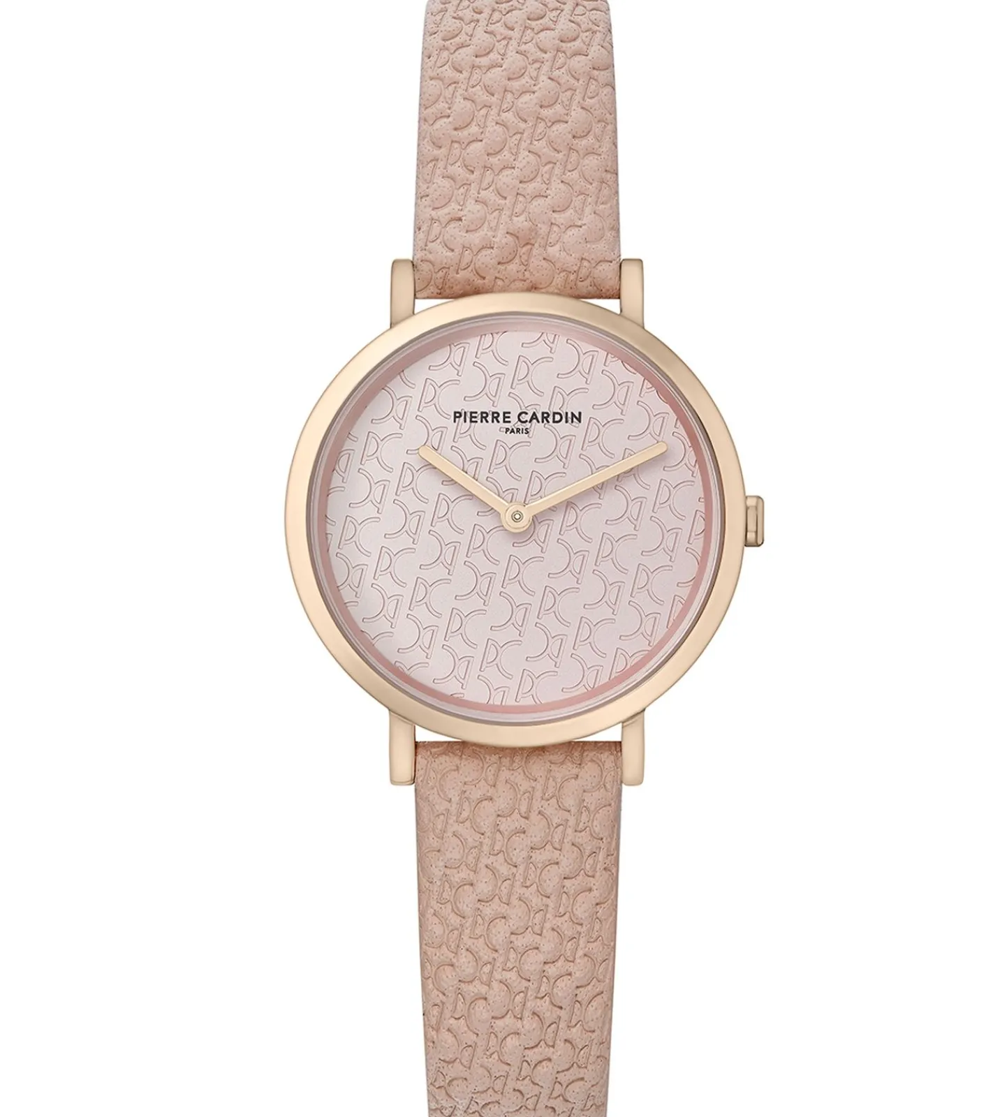 Pierre Cardin Damen Armband-Uhr mit Marken-Kürzel-Print analoge Quarz-Uhr mit Leder-Armband 3ATM 31mm CBV.1504 Rosa