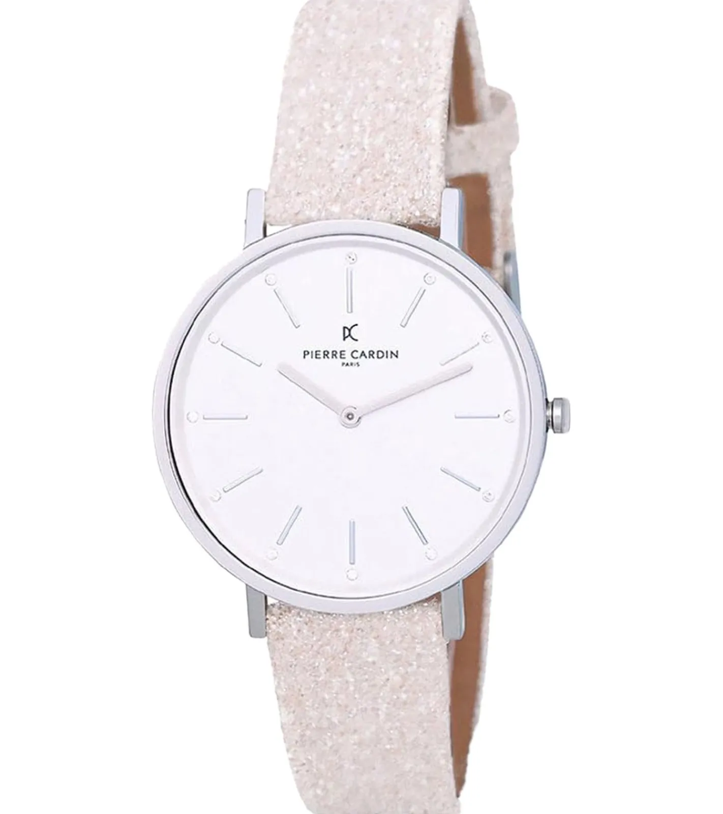 Pierre Cardin Damen Armband-Uhr schlichtes Ziffernblatt analoge Quarz-Uhr glitzerndes Leder-Armband 3ATM 36mm CBV.1115 Silber