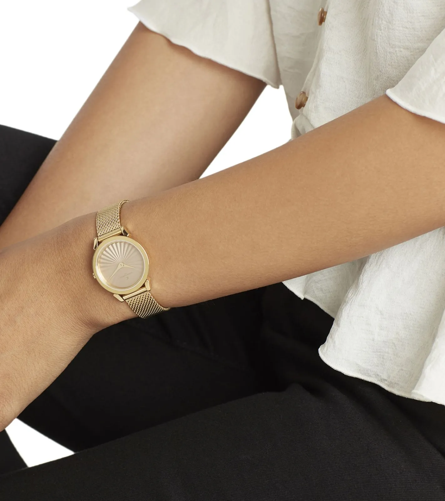 Pierre Cardin Damen Armband-Uhr schlichtes Ziffernblatt analoge Quarz-Uhr mit Edelstahl-Armband 3ATM 27mm CPI.2522 Gold