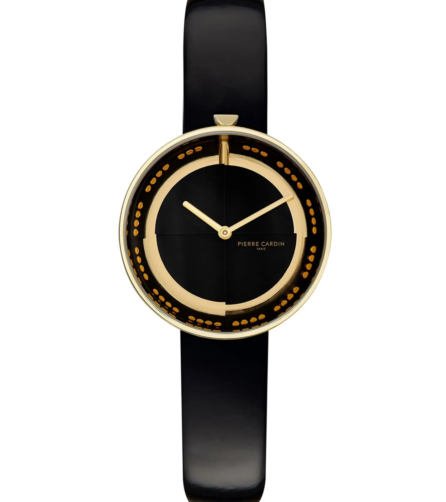 Pierre Cardin Damen Armband-Uhr schlichtes Ziffernblatt analoge Quarz-Uhr mit Leder-Armband 3ATM 33mm CMA.0002 Schwarz/Gold