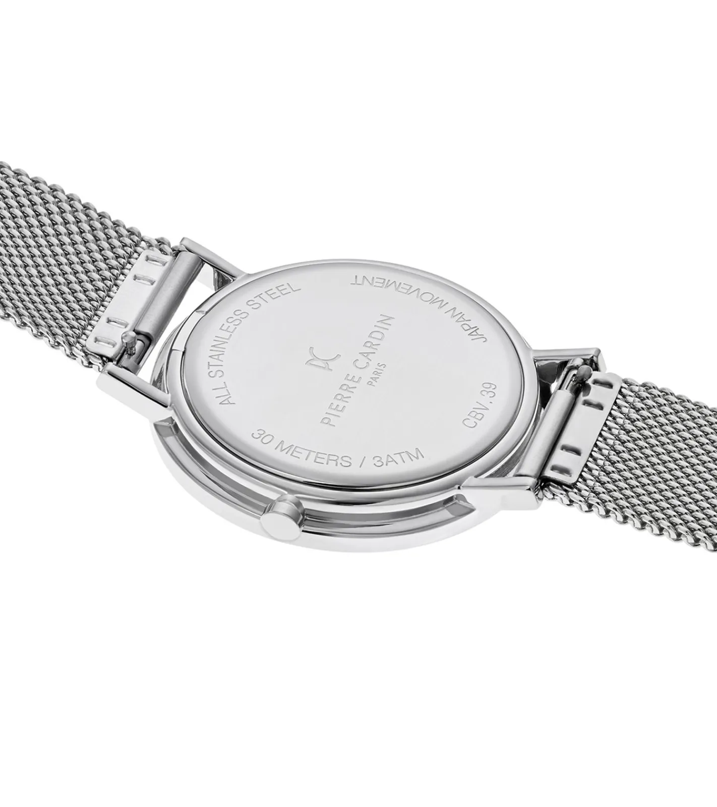 Pierre Cardin Damen schlichte Armband-Uhr analoge Quarz-Uhr mit Edelstahl-Armband 3ATM 39mm CBV.1006 Silber