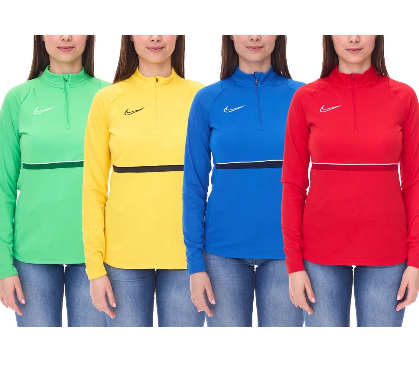 NIKE Academy 21 Dry Drill Longsleeve Damen Trainings-Top mit Half-Zip Sweatshirt mit Dry-Fit CV2653 Grün, Gelb, Blau oder Rot