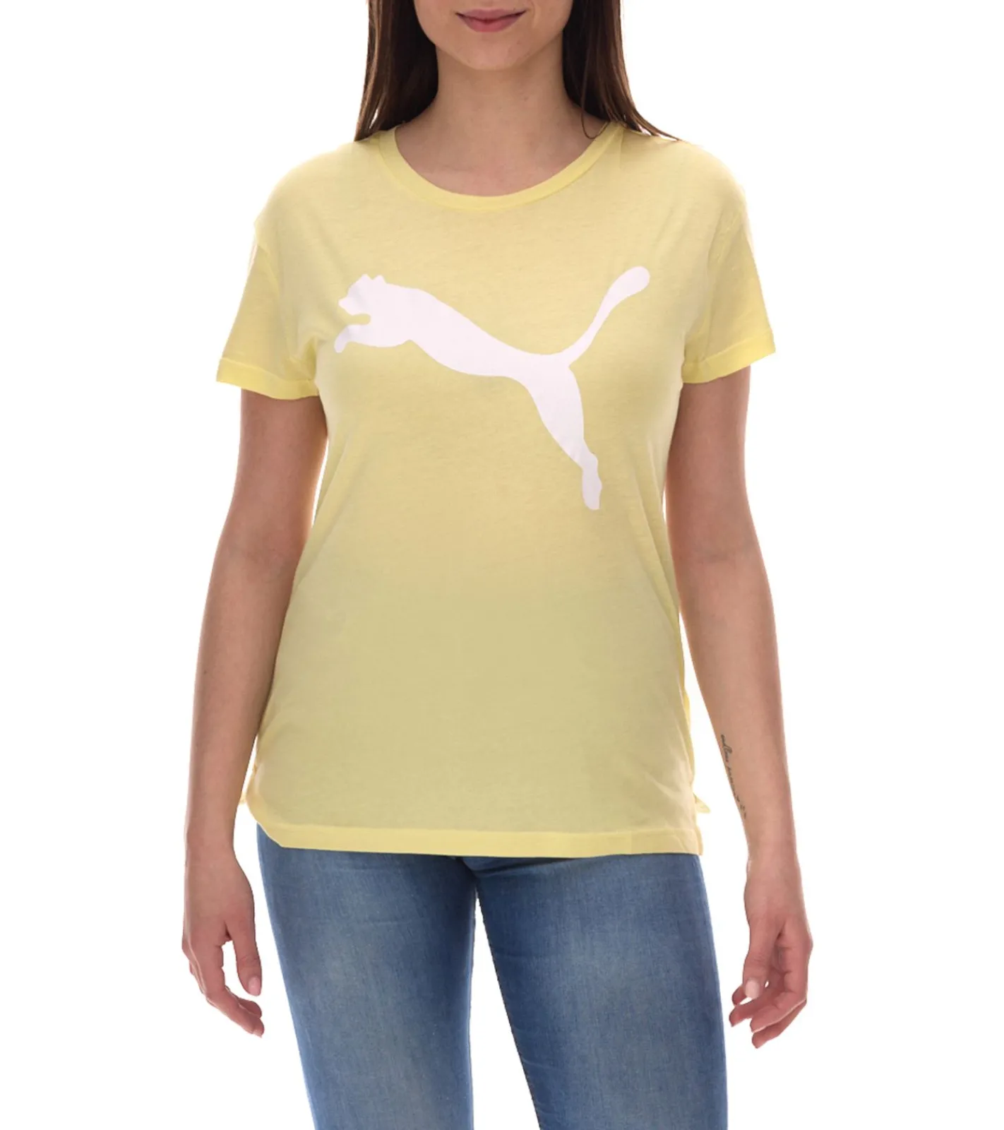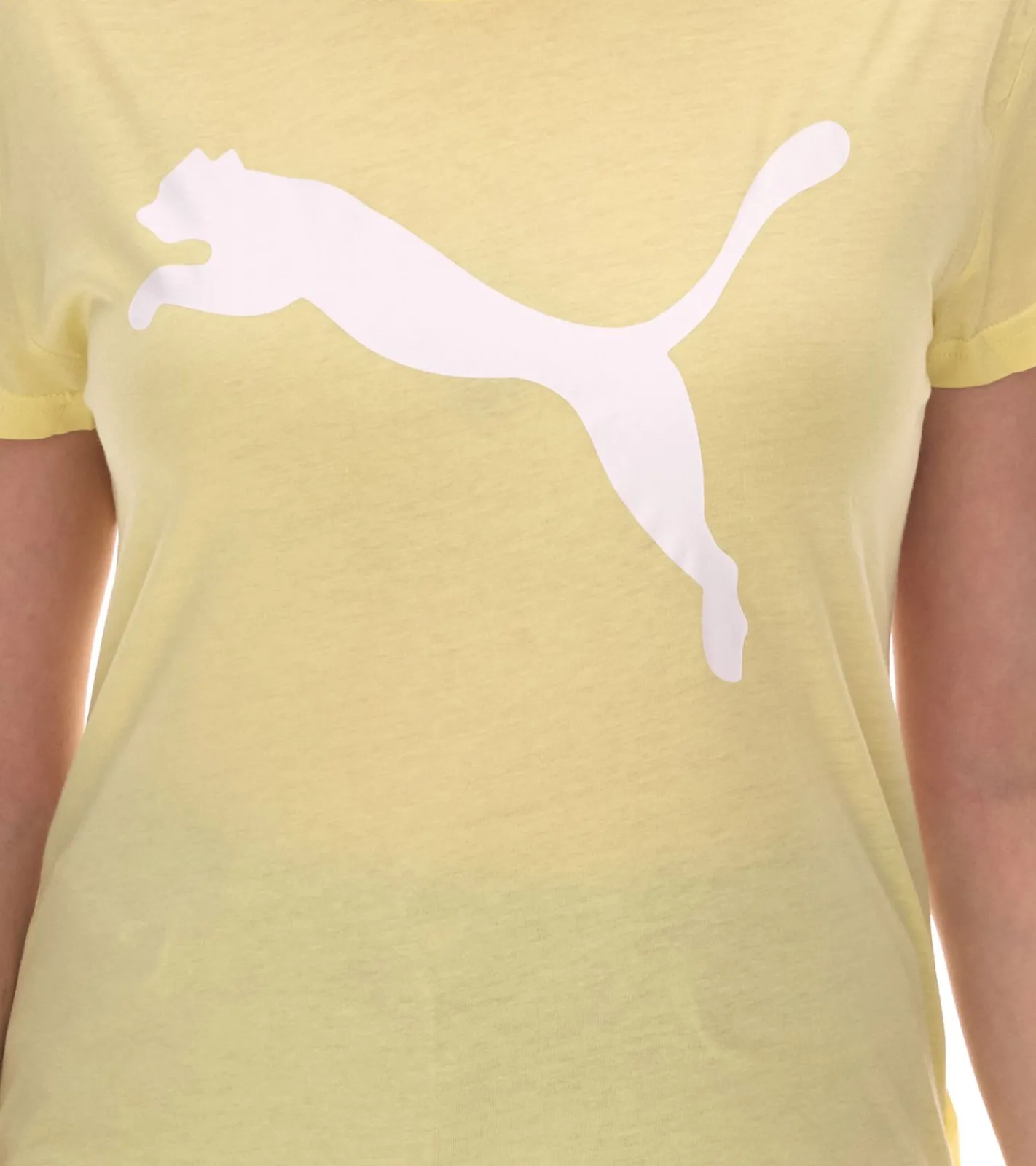 PUMA Damen Sommer-Shirt mit DryCell-Technologie Baumwoll-Shirt Kurzarm-Shirt mit PUMA-Logo 586454 40 Gelb/Weiß