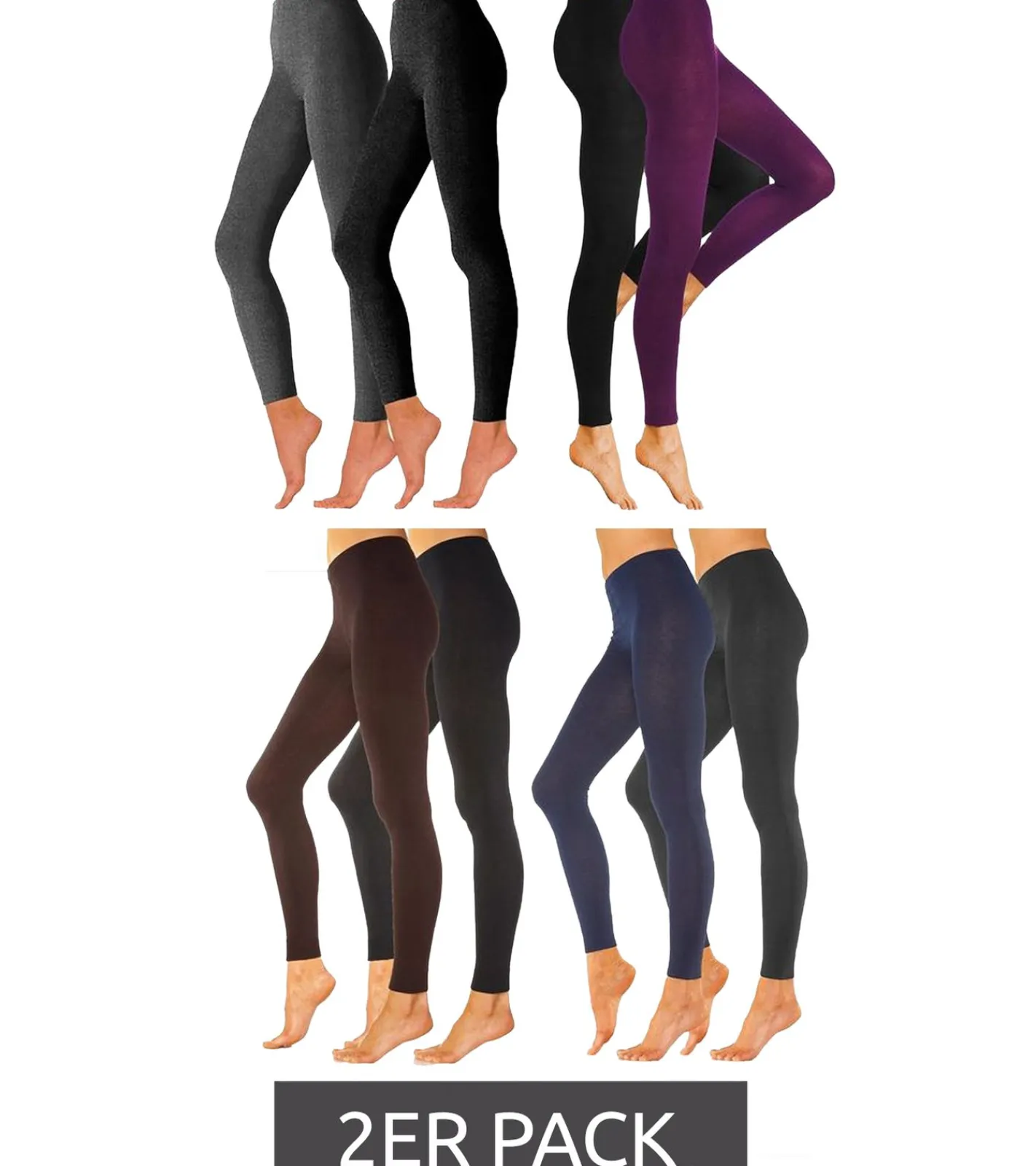 2er Pack ROGO X LAVANA Damen Baumwoll-Leggings bequeme Leggings Sport-Leggings Schwarz, Lila, Grau, Braun, Blau