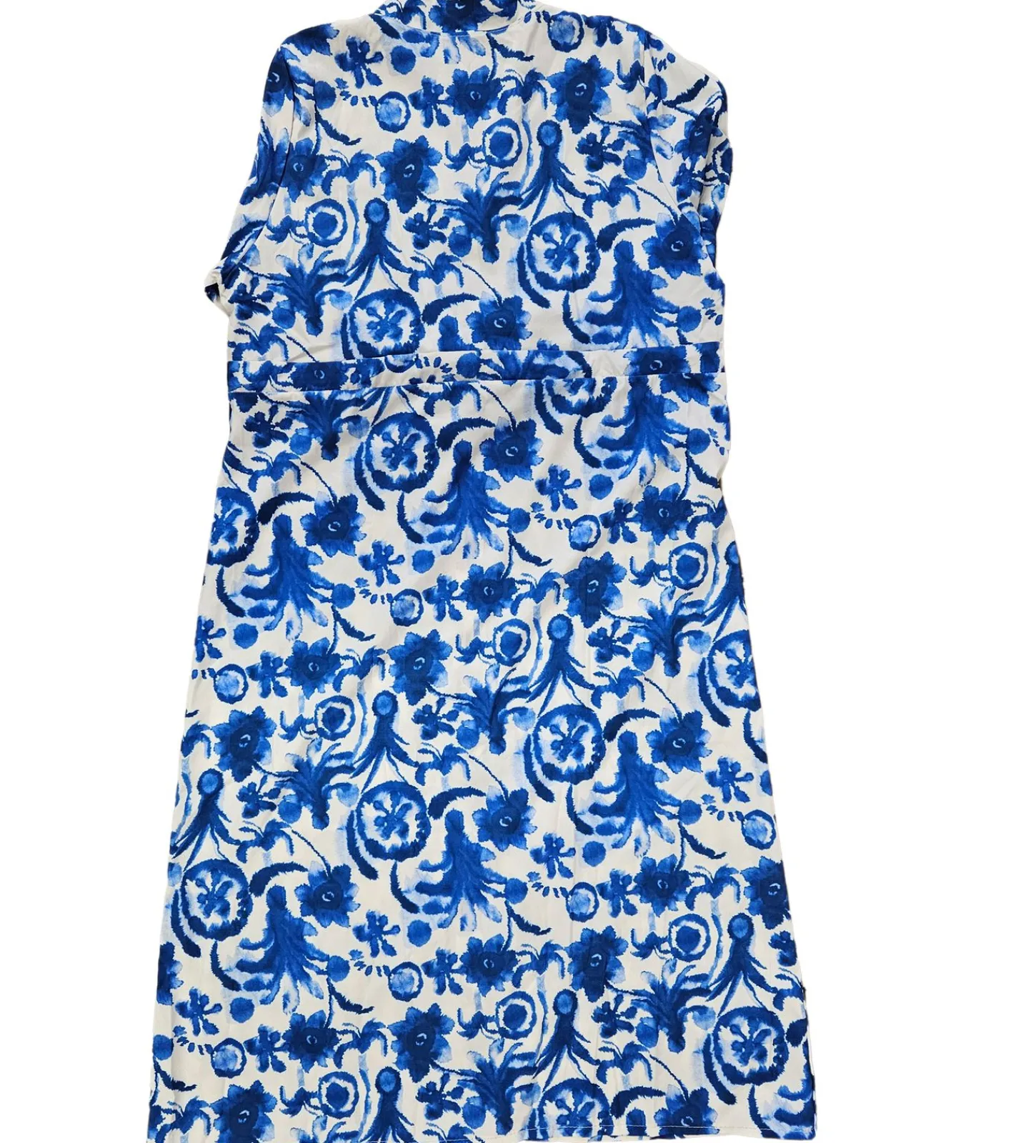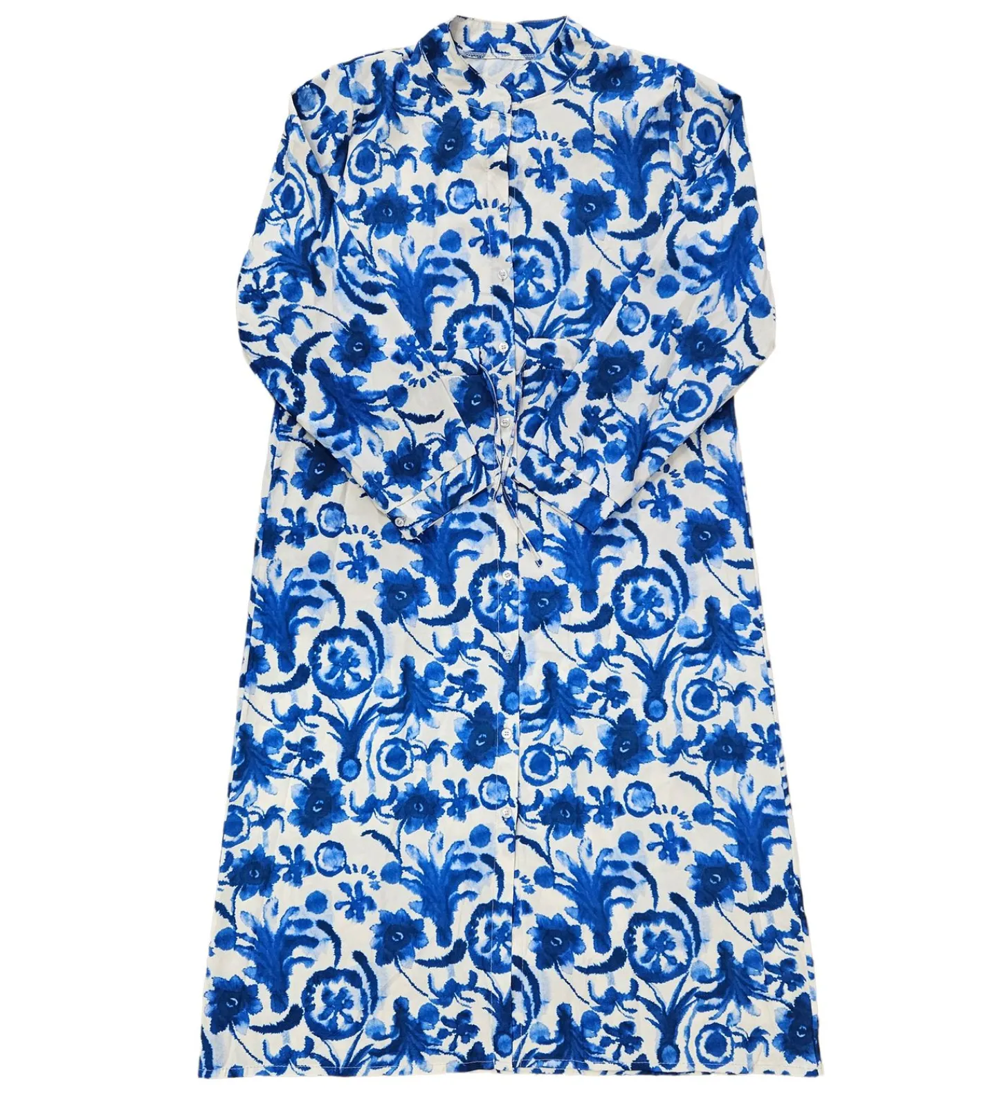 Curvy Lady Damen Sommer-Kleid leichtes Maxi-Kleid mit Blumen-Print Große Größen 22231 Blau/Weiß