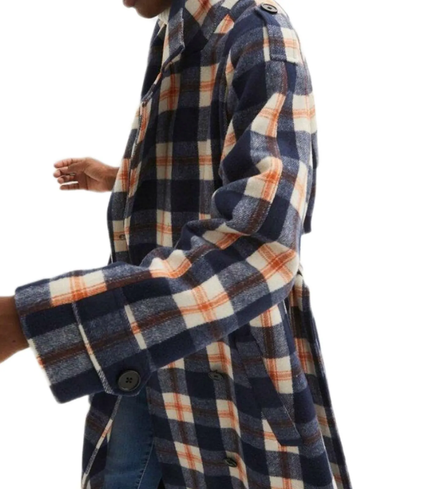 karierter Damen Frühlings-Mantel mit Gürtel Alltags-Mantel Basic-Mantel Langarm-Jacke 940534 Blau/Orange