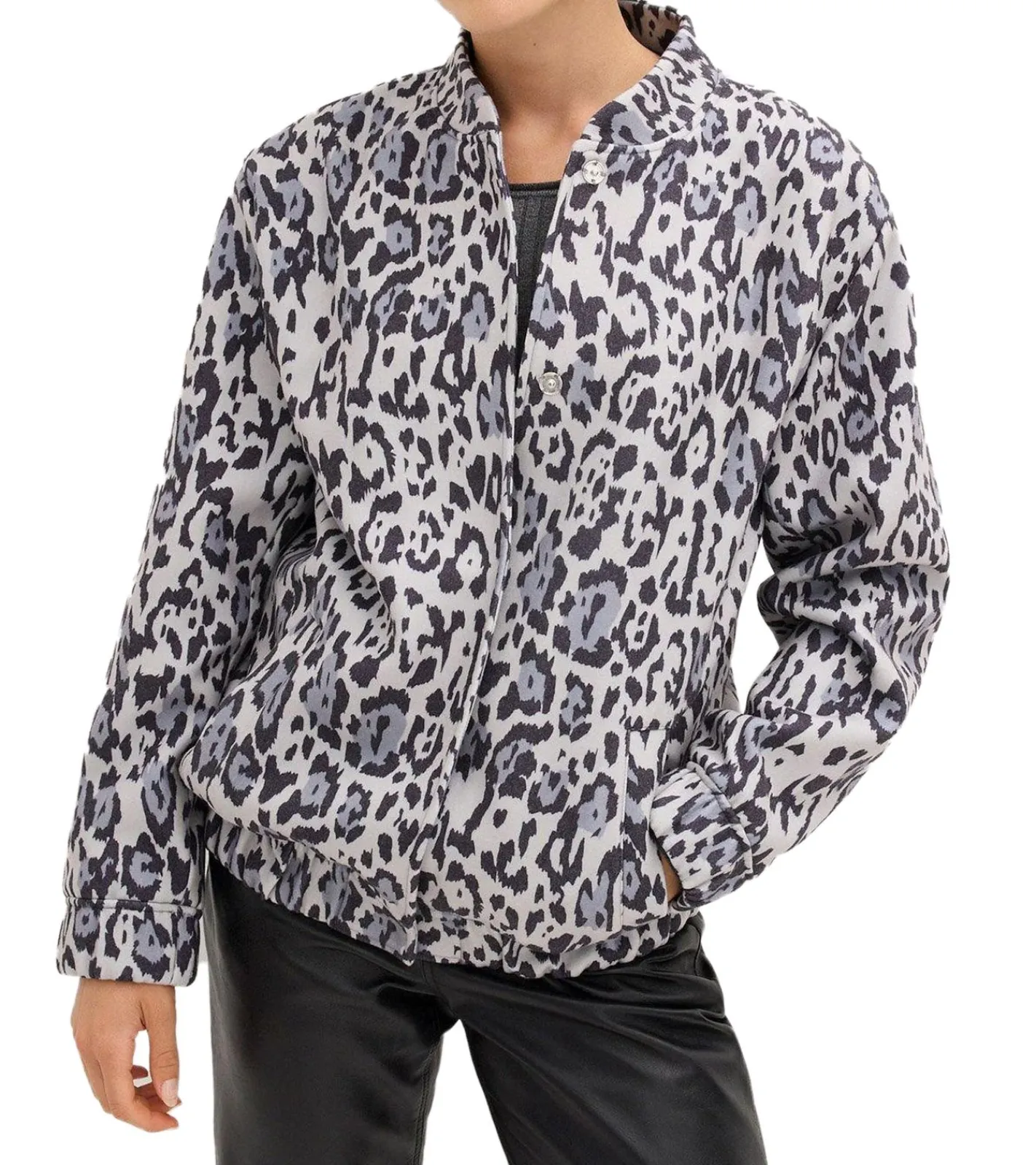 nachhaltiger Damen Blouson im Leo-Print Übergangs-Jacke Frühlings-Jacke kuschelige Sommer-Jacke 909753 Beige