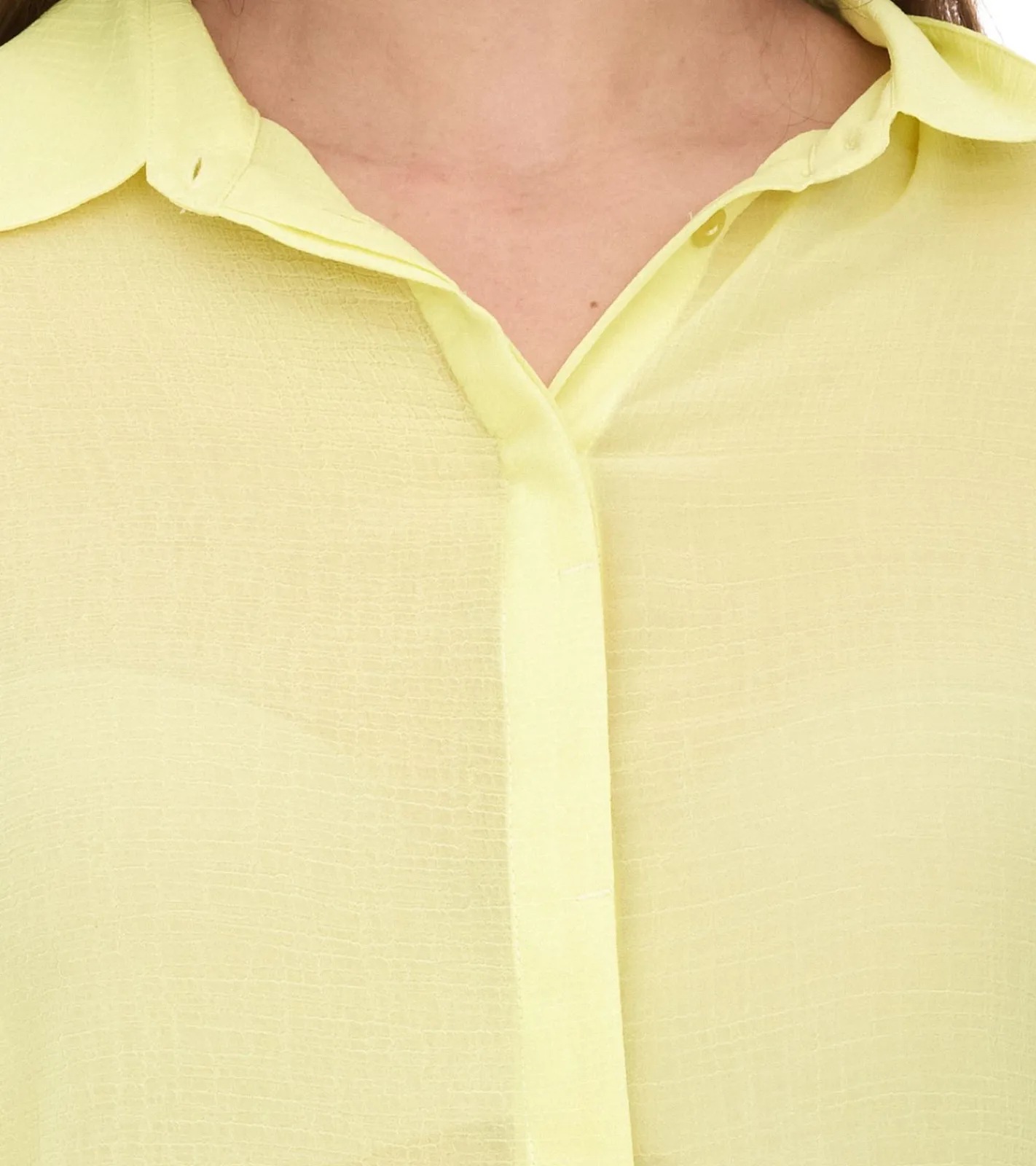Aniston SELECTED Damen Sommer-Bluse Langarm-Shirt mit Kent-Kragen sommerliche Basic-Bluse 13456949 Gelb