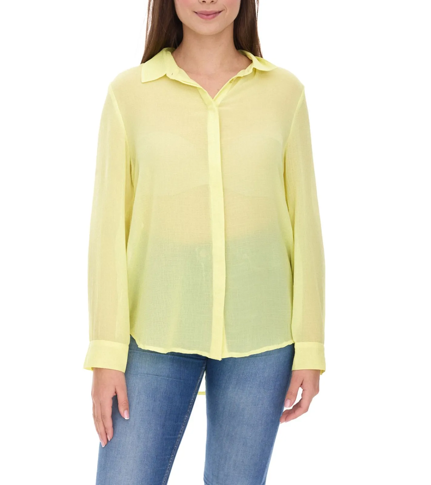 Aniston SELECTED Damen Sommer-Bluse Langarm-Shirt mit Kent-Kragen sommerliche Basic-Bluse Gelb oder Grün