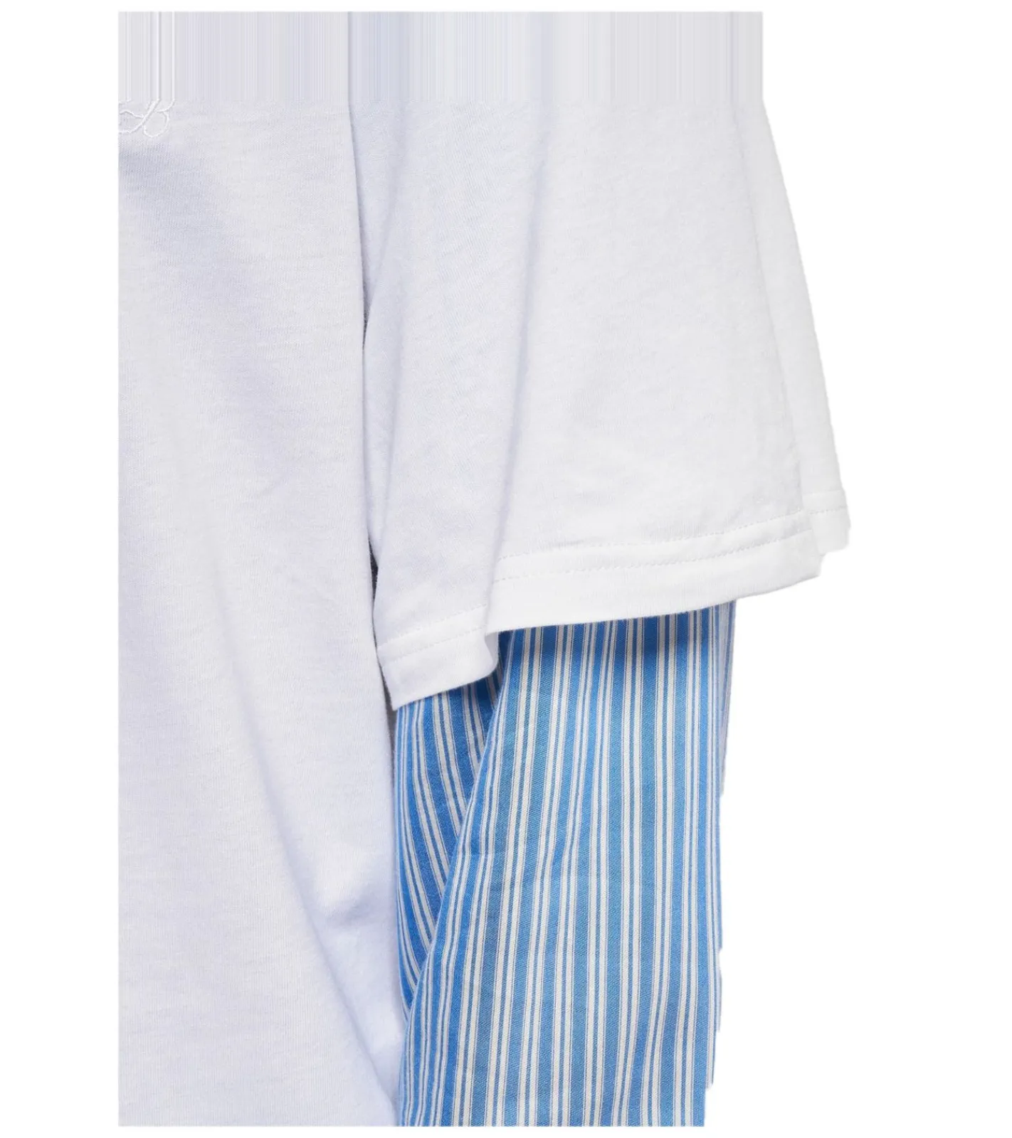 Wales Bonner Yé Yé Hybrid-Shirt Herren Hemd mit Seidenmischgewebe Langarm-Shirt Weiß/Blau