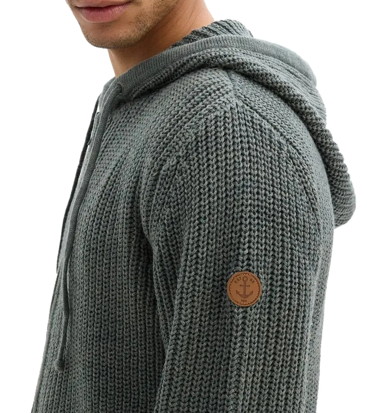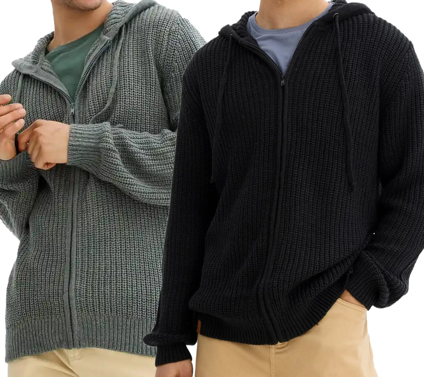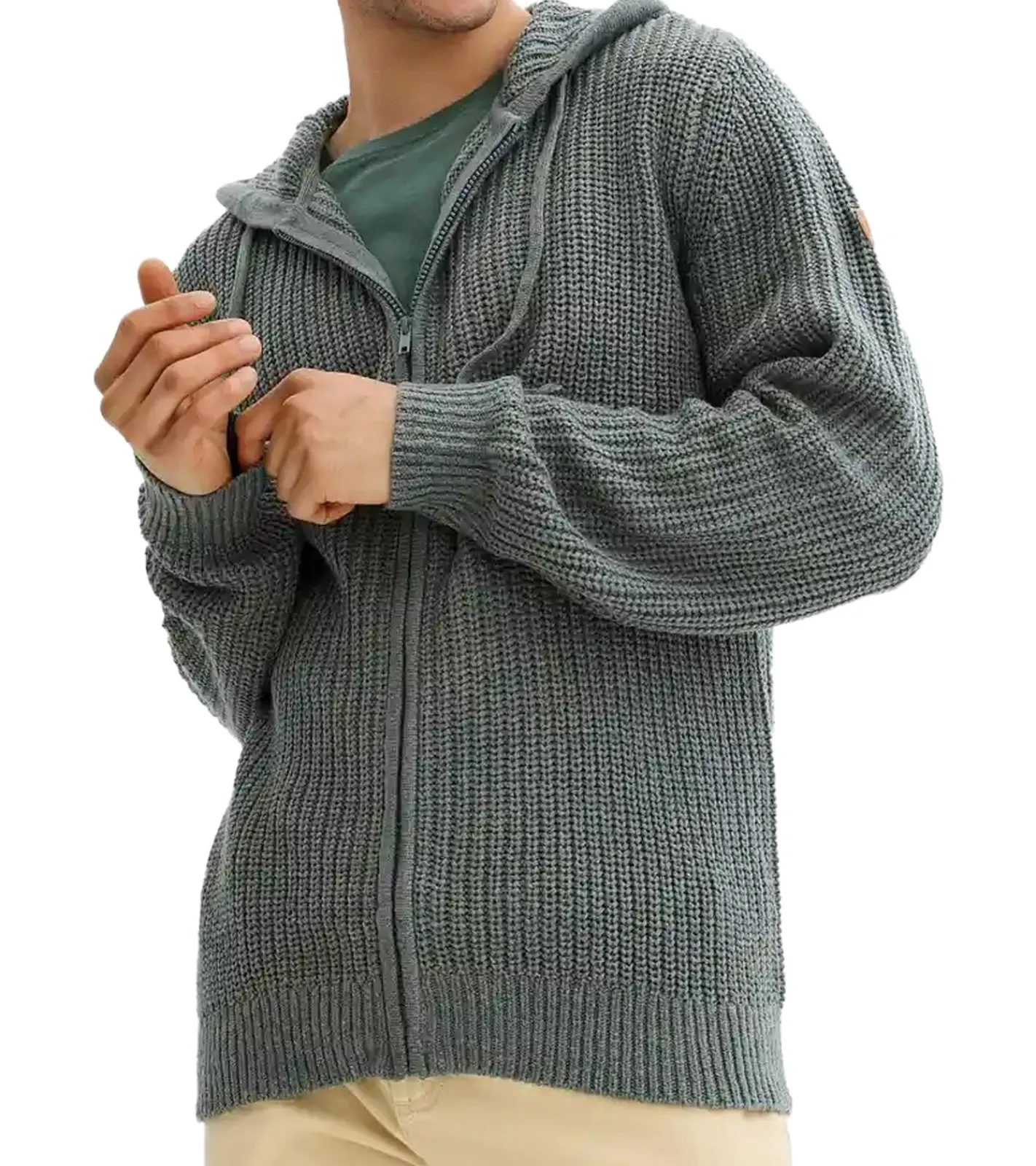 Herren schöne Basic Strick-Jacke mit Kapuze Grobstrick-Pullover Schwarz oder Eukalyptus-Grün