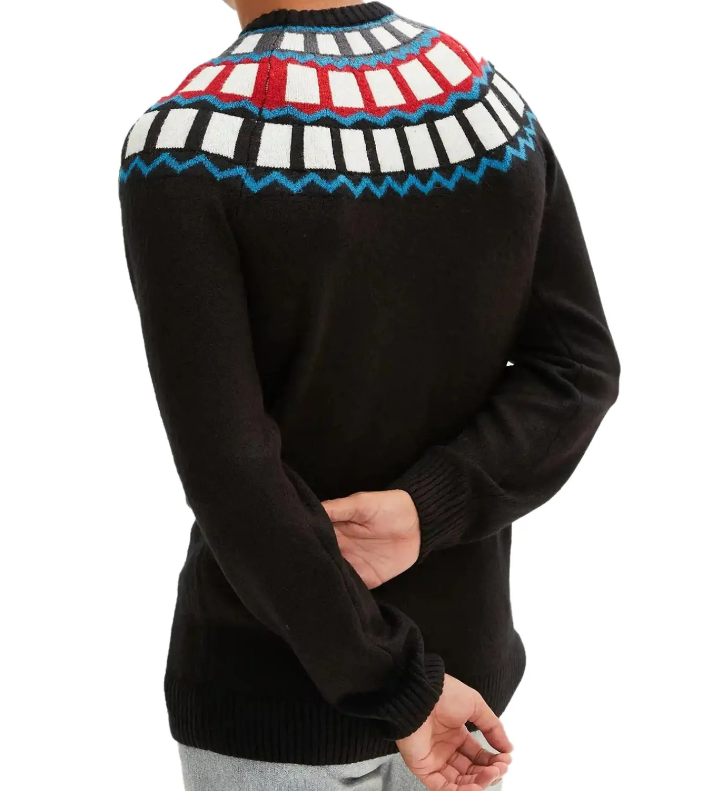 Herren Strick-Pullover mit geometrischen Muster Freizeit-Sweater in Schwarz oder Blau