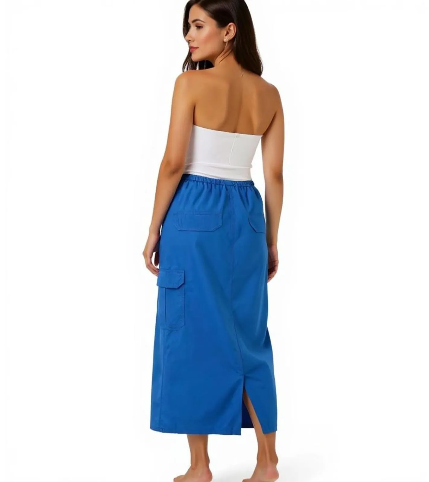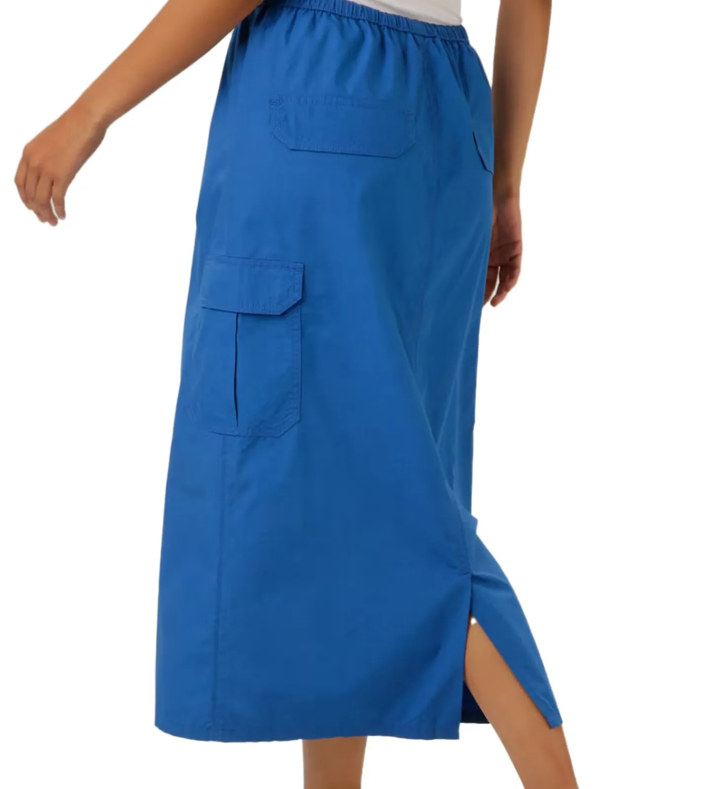 Aniston CASUAL Damen Cargo-Rock Sommer-Rock Midi-Länge Baumwoll-Rock mit Gummizug 77100947 Blau