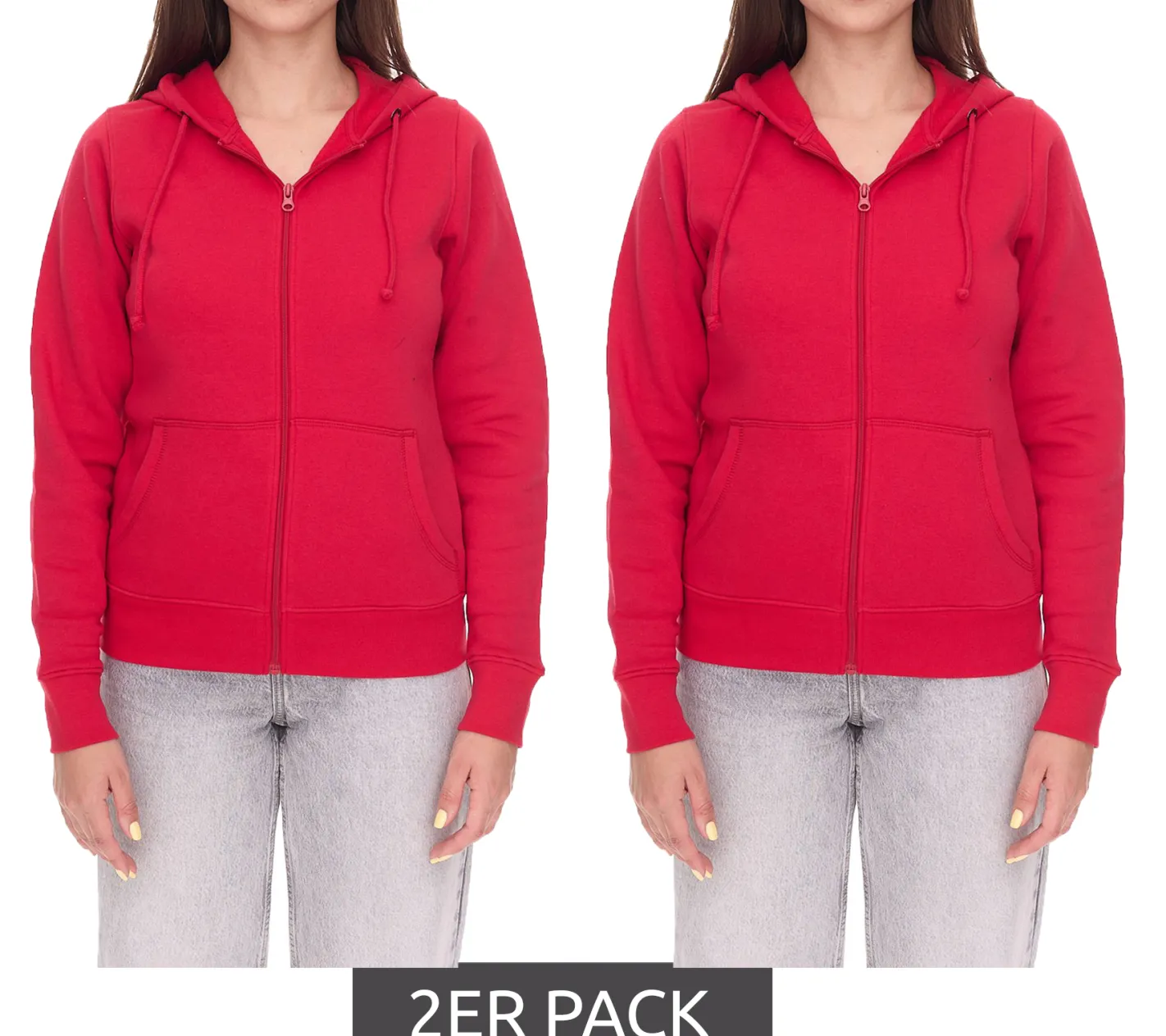 2er Sparpack ELEVATE Theron Damen Sweat-Jacke mit 240 g/m2 Baumwoll-Sweater Kapuzen-Pullover Hoodie 3823025 Rot