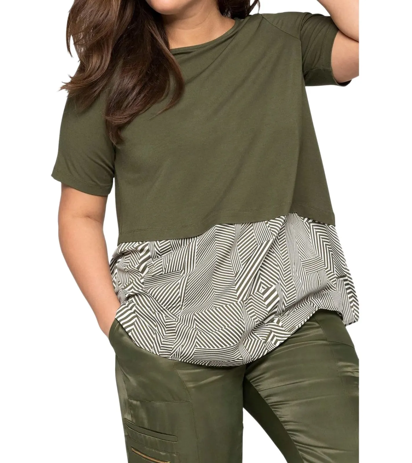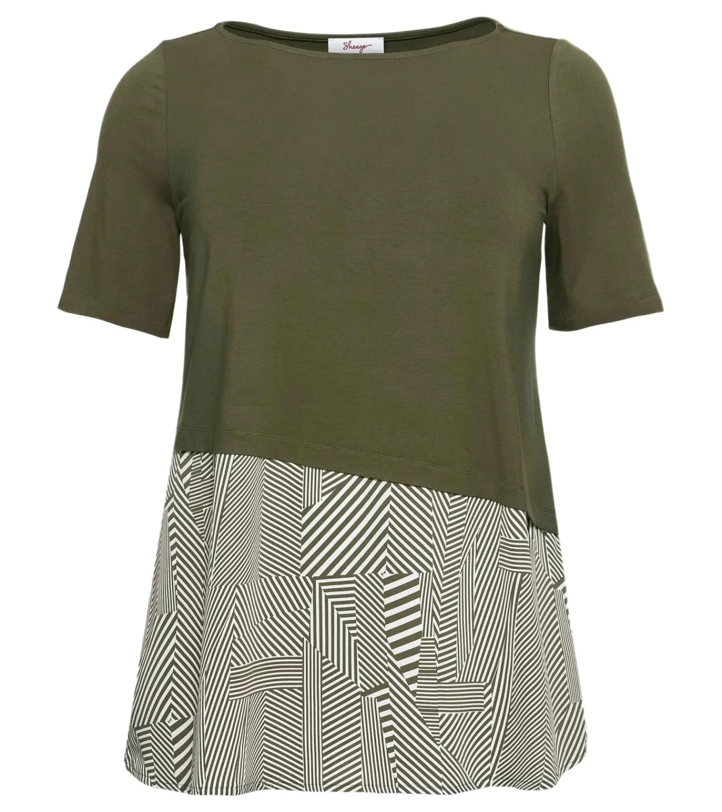 sheego Damen T-Shirt im Layer-Look Sommer-Shirt Große Größen 135028 Grün/Weiß/Schwarz