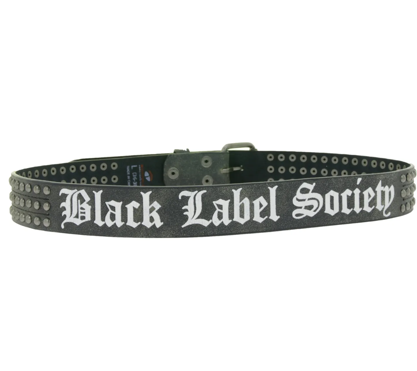 Black Labels Society Gürtel der Heavy-Metal-Band für Damen und Herren 100cm mit Nieten und Schriftzug Freizeit-Gürtel Schwarz/Weiß