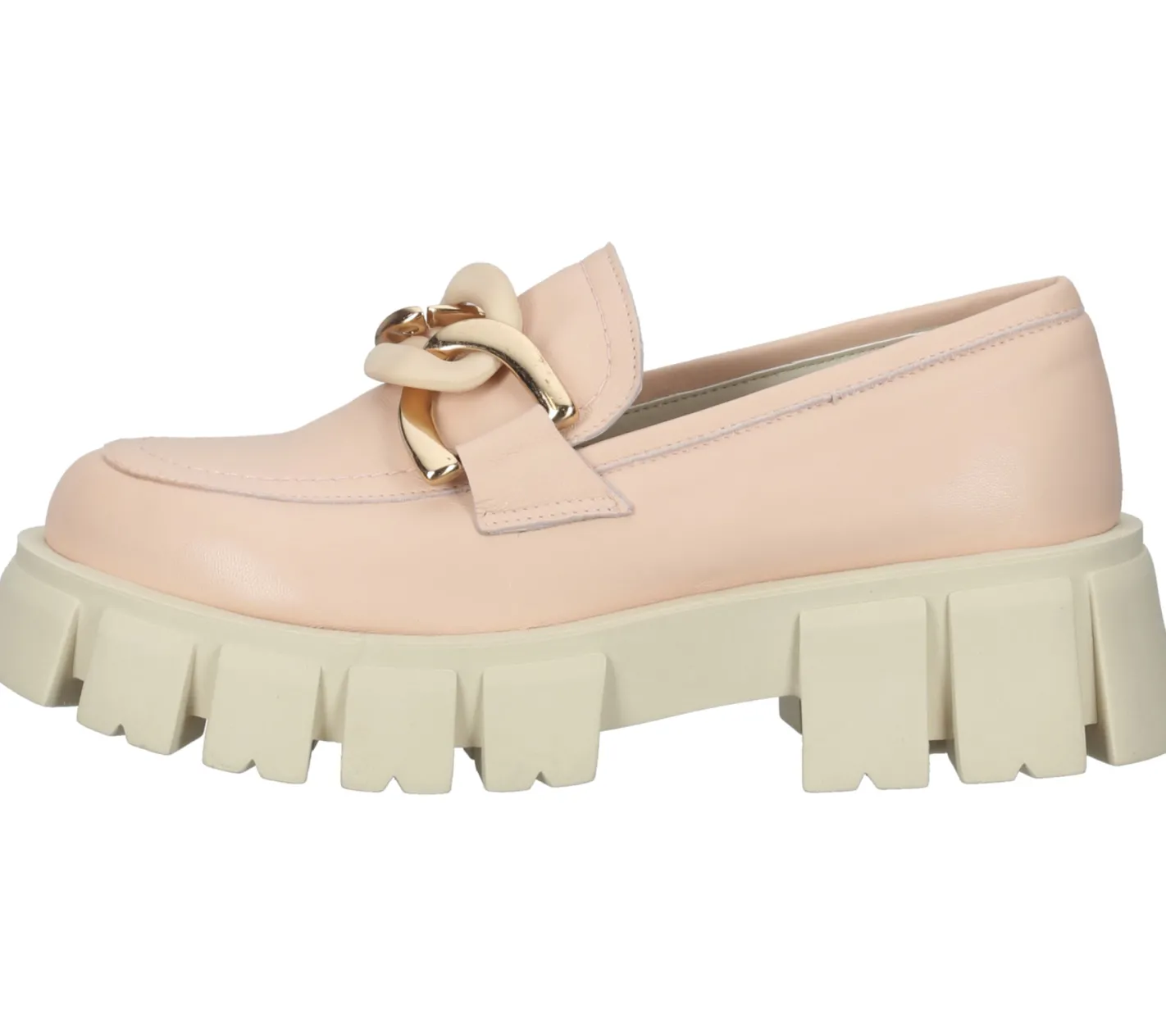 LAZAMANI Damen Echtleder Halbschuhe mit zweifarbiger Gliederkette auf Spann Plateau-Slipper 55.082 Rosa