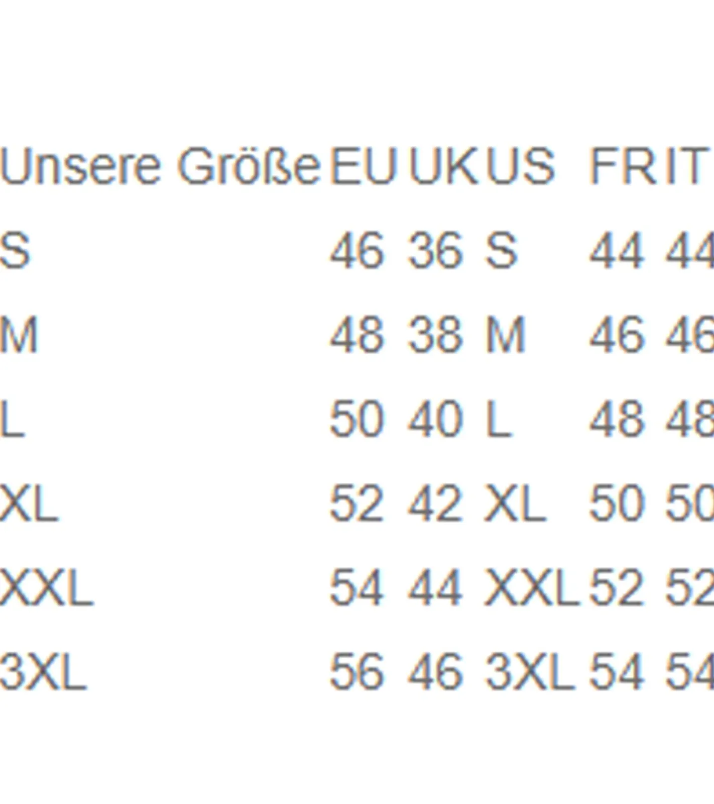 | Size | 34, 36, 38, 40, 42, 44, 46, 48 |