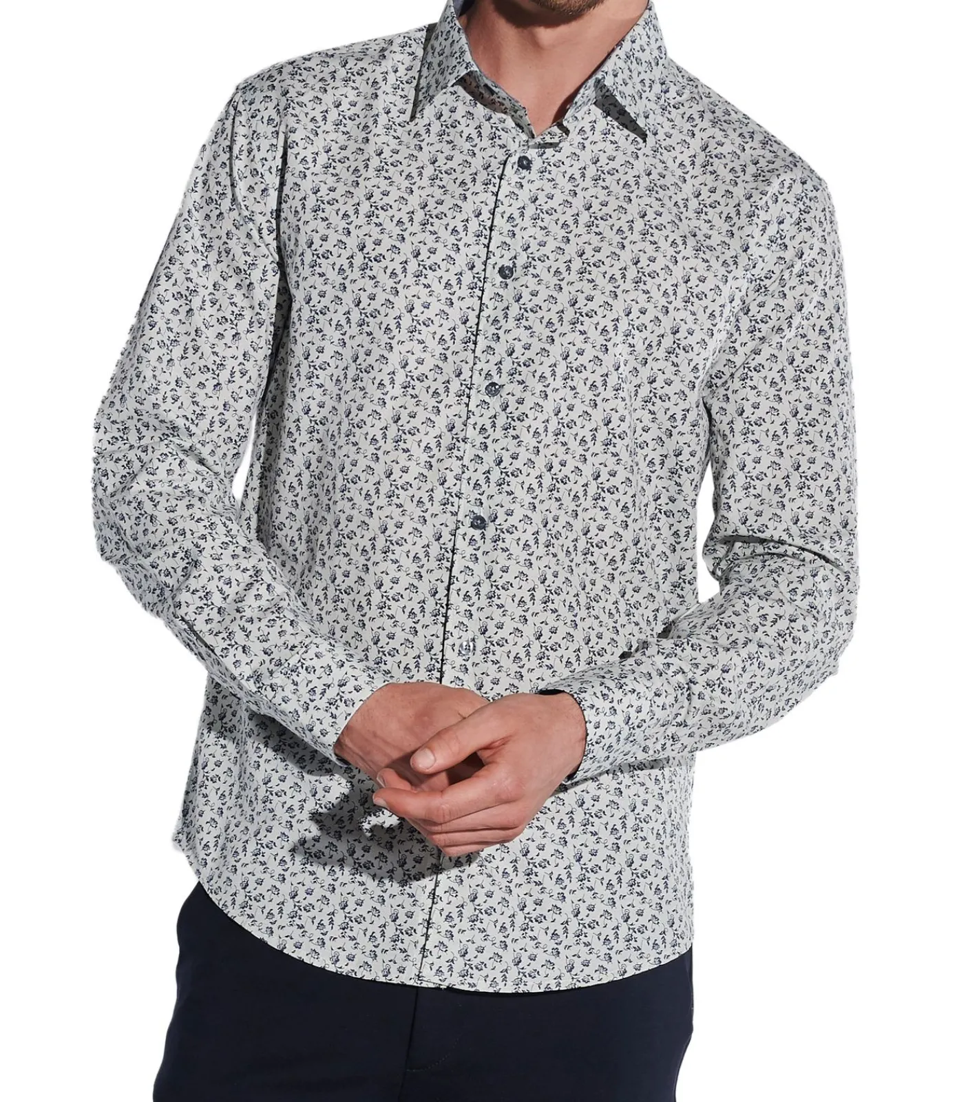 JAN PAULSEN Herren Langarm-Hemd Blumendruck in Slim-Fit Form Baumwoll-Hemd 901289 leicht Mint-Grün