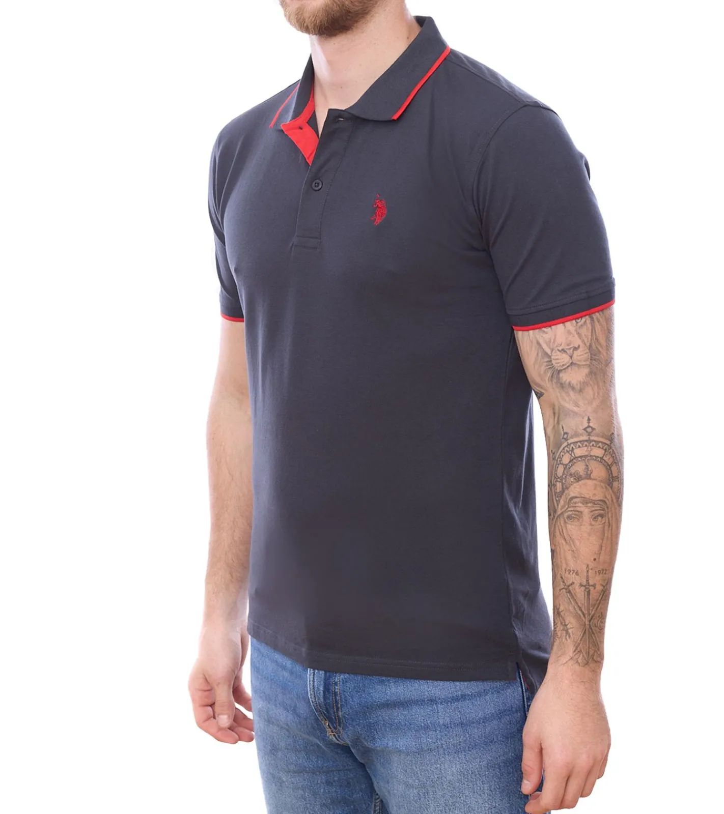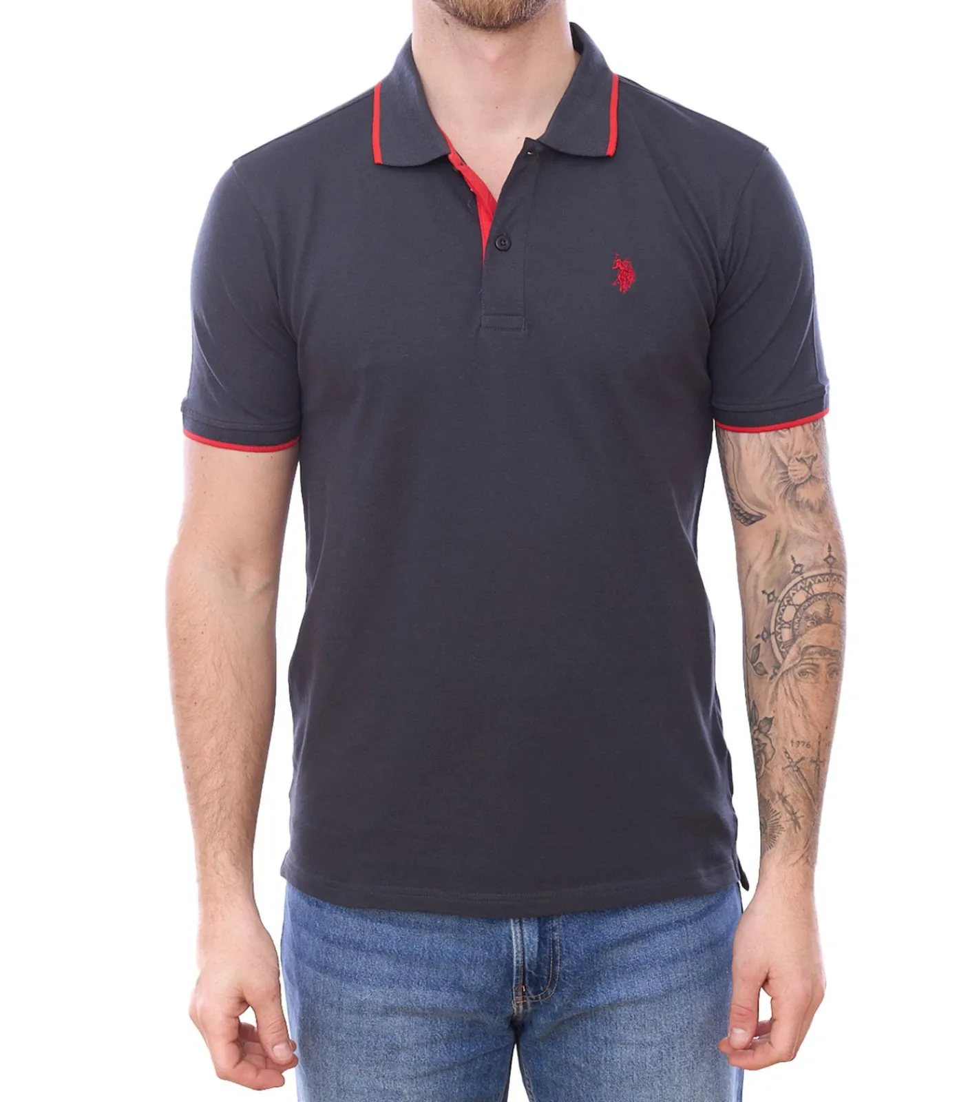 3er Sparpack U.S. POLO ASSN. Herren Polo-Shirt Basic-Shirt Baumwoll-Shirt Kurzarm-Shirt 197 66835 52520 297 Grau/Rot