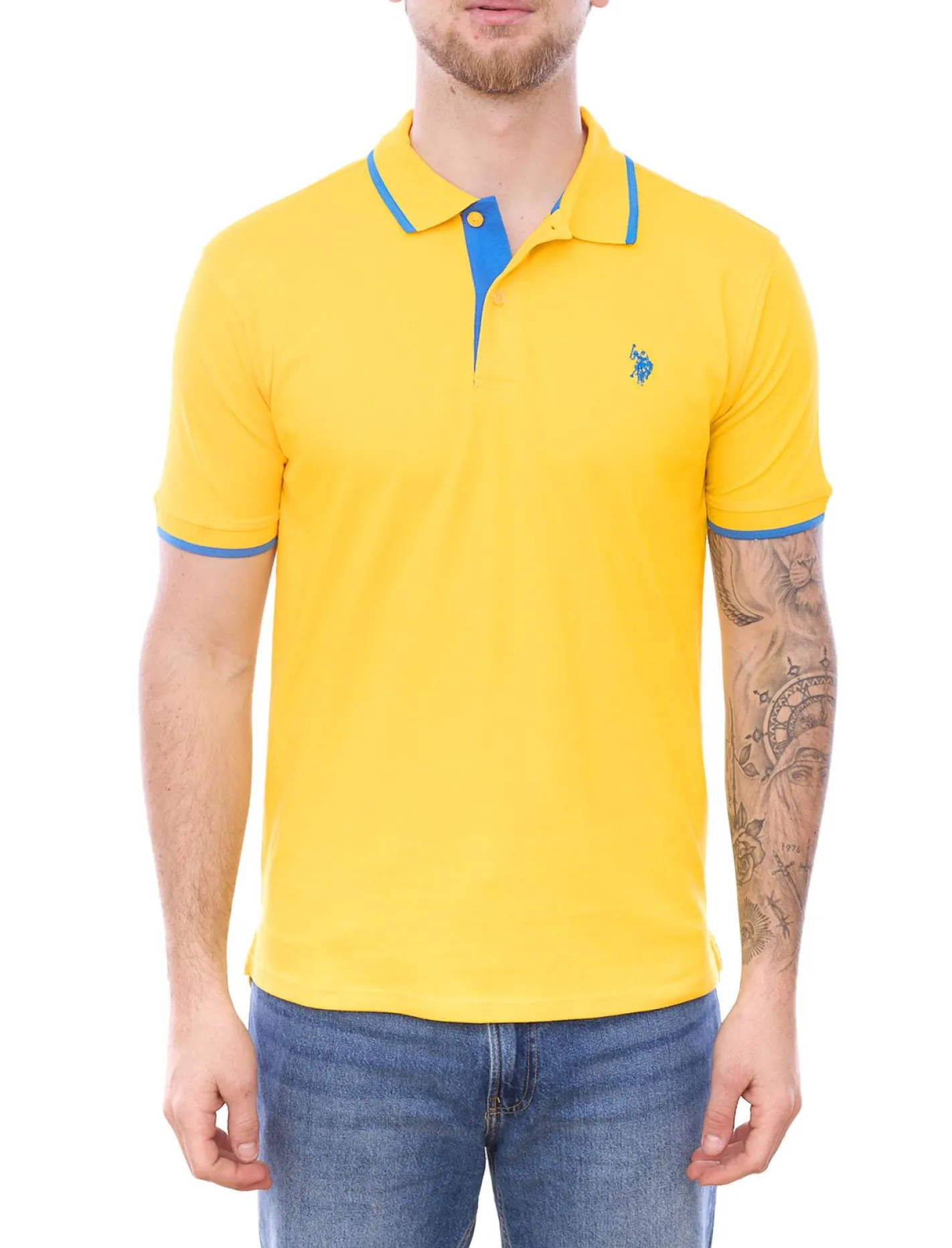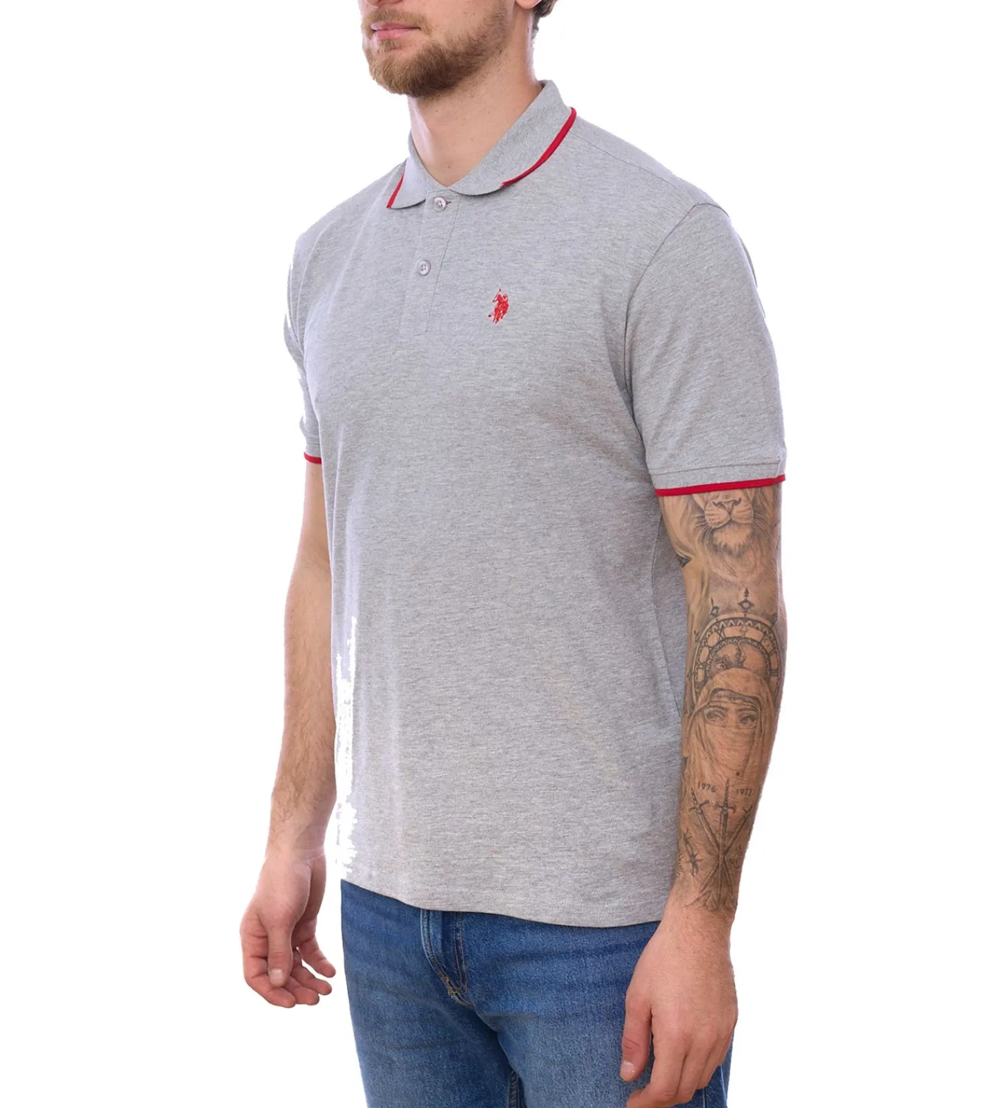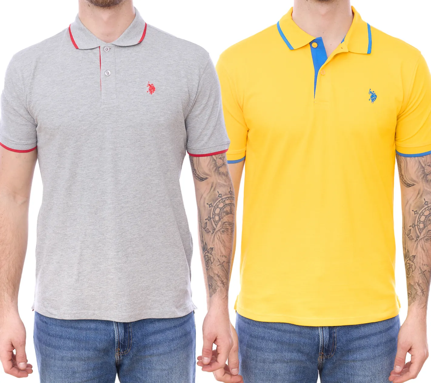 U.S. POLO ASSN. Herren Polo-Shirt Basic-Shirt Baumwoll-Shirt Kurzarm-Shirt 197 63899 52520 in Grau/Rot oder Gelb/Blau