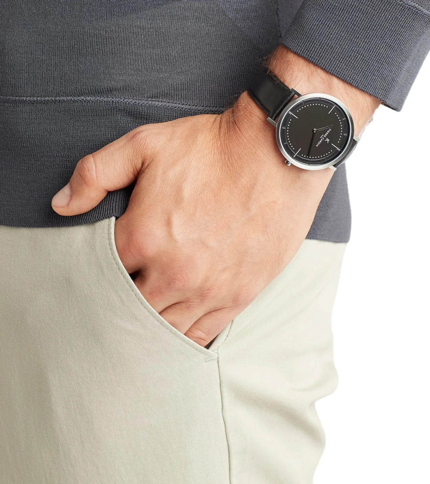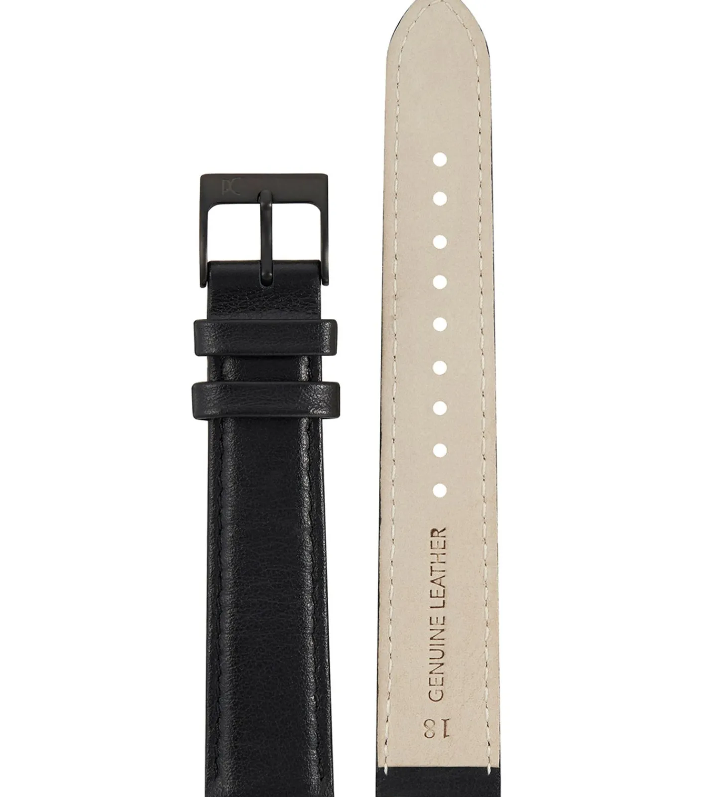 Pierre Cardin Herren analoge Quarz-Uhr mit Leder-Armband Armband-Uhr 3ATM 42mm CBV.1029 Silber/Schwarz