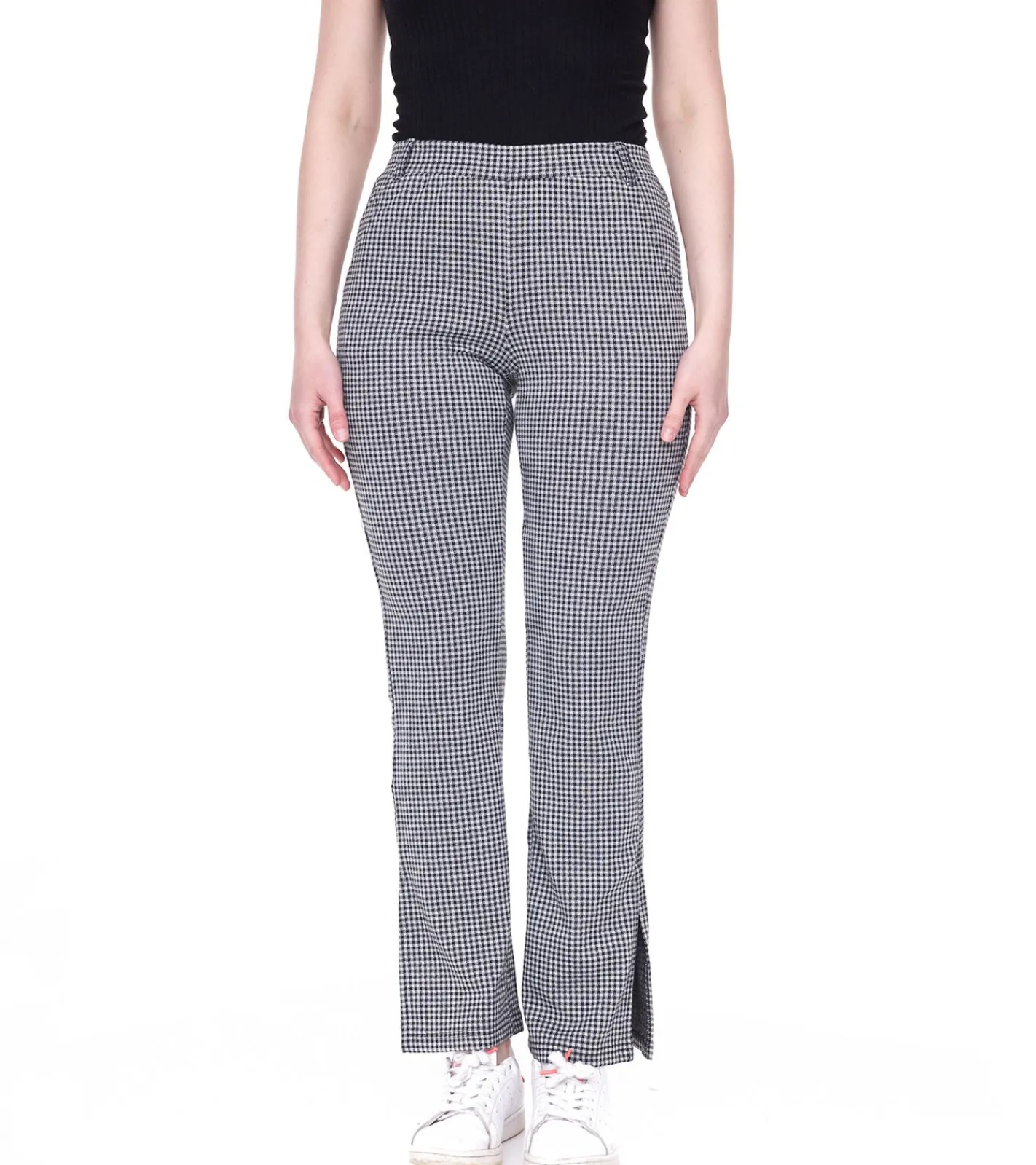 AjC Damen karierte Stoff-Hose modische Bootcut-Hose in Schlupf-Form 71797023 Schwarz/Weiß
