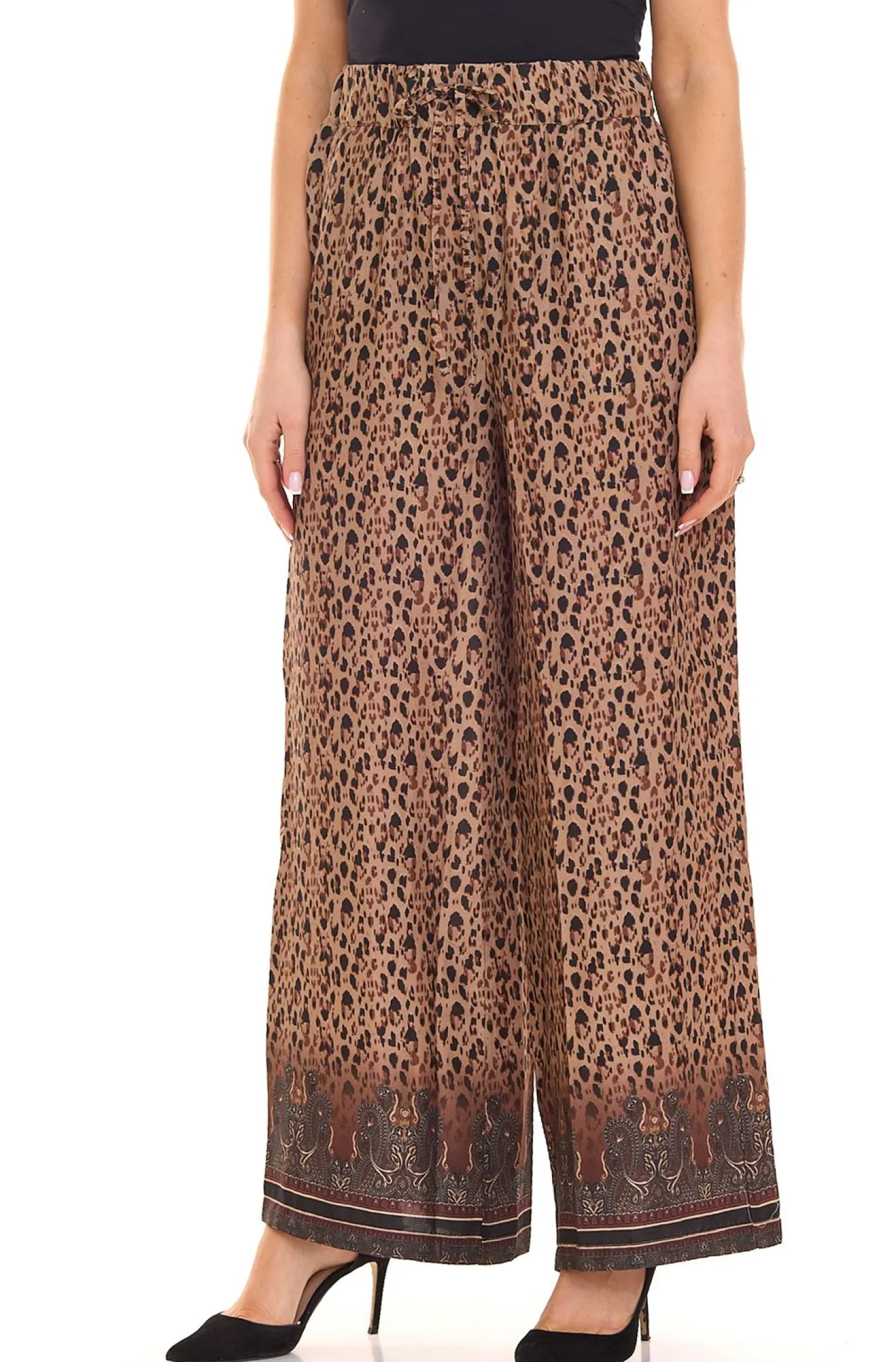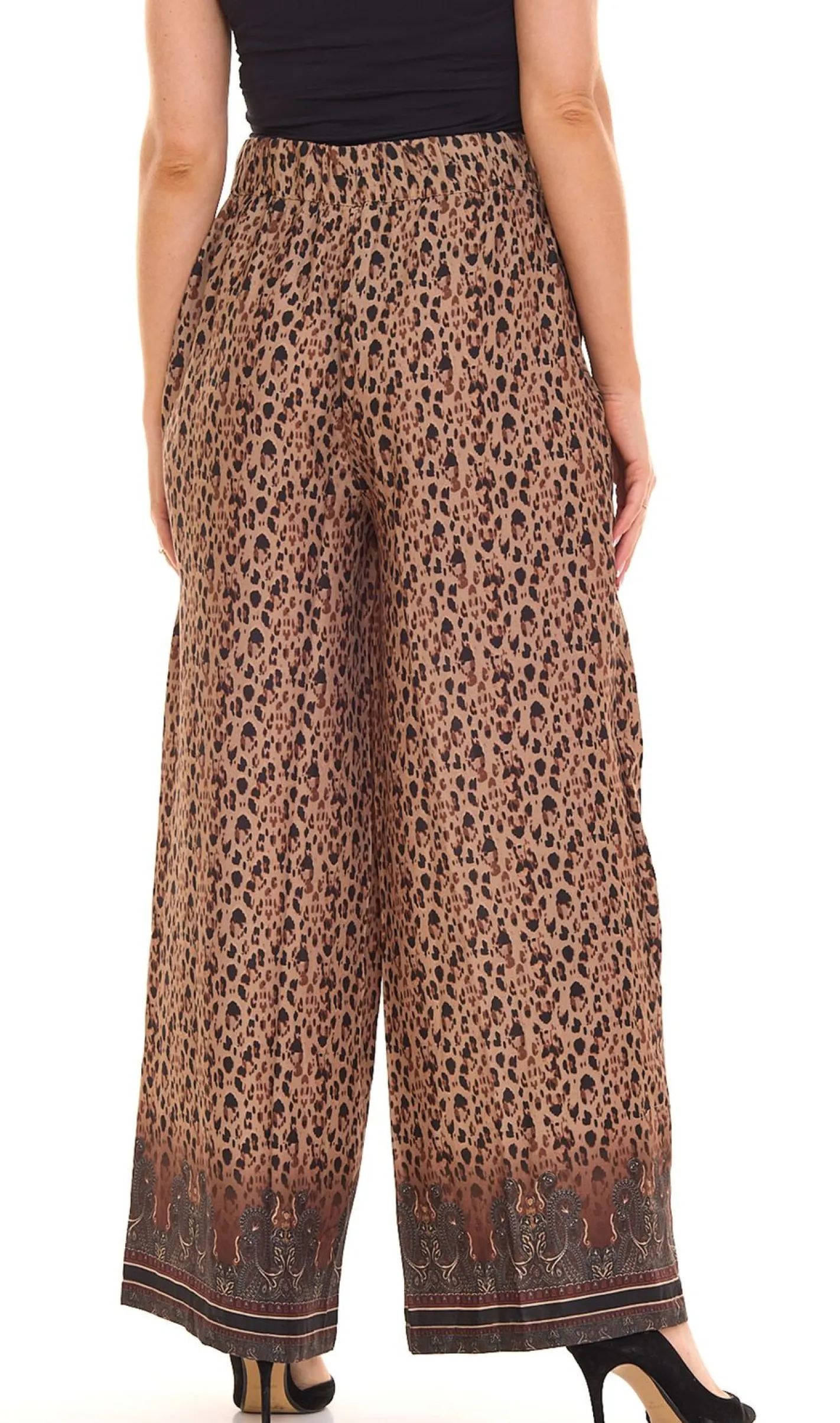 Aniston CASUAL Damen Schlupf-Hose bequeme Sommer-Hose mit Allover Leoparden-Muster 24252520 Beige/Braun