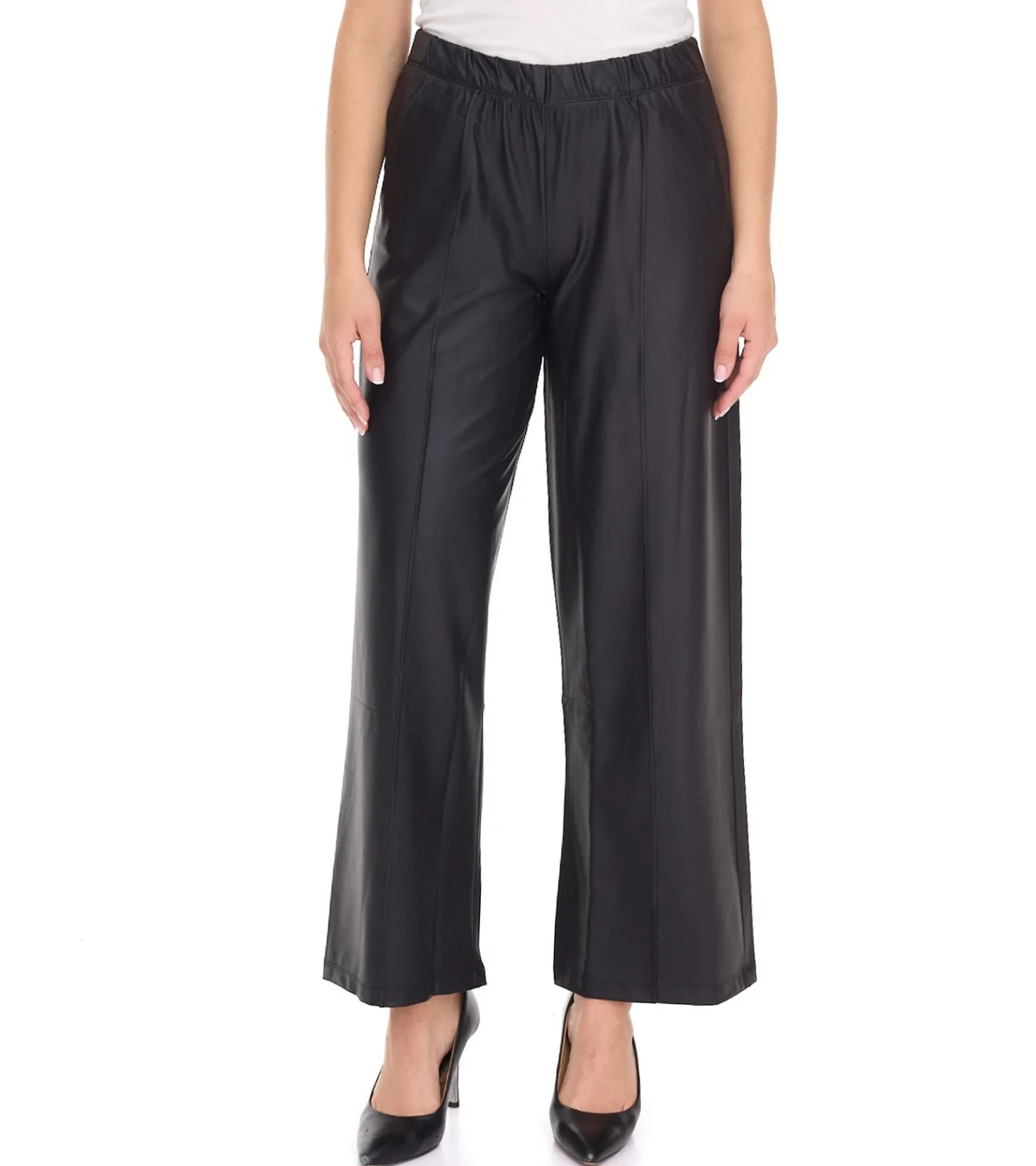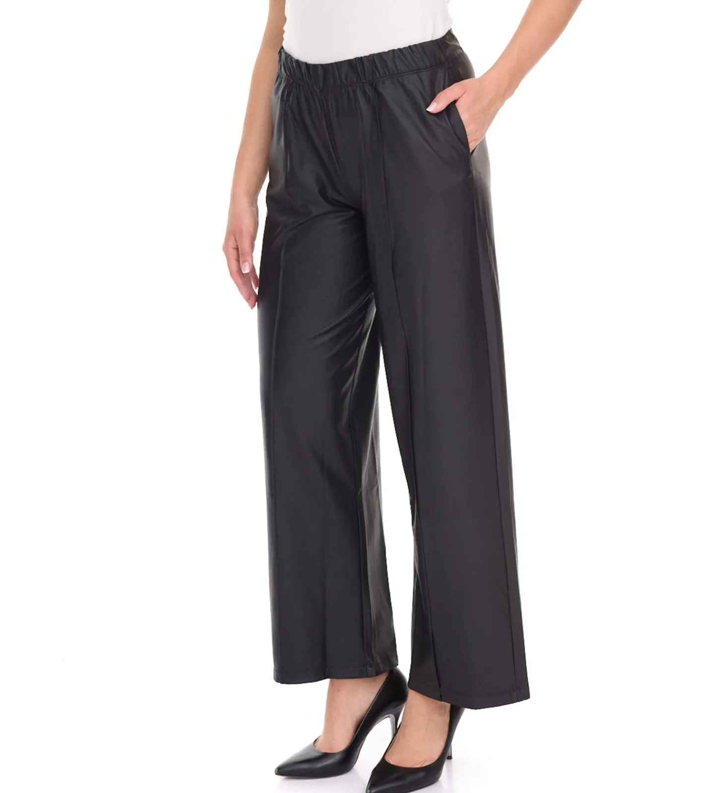 ROCKUPY Damen Kunst-Leder Palazzo-Hose schlichte Marlene-Hose Freizeit-Hose PRW20-040703 802 Schwarz