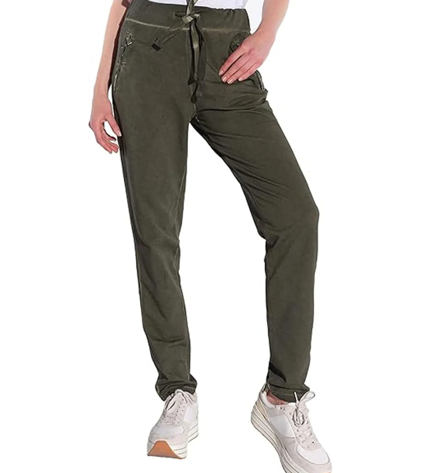 vestino Damen Jogg-Pant mit Vintage-Färbung Stoff-Hose mit Zipp-Taschen 901579 Grün