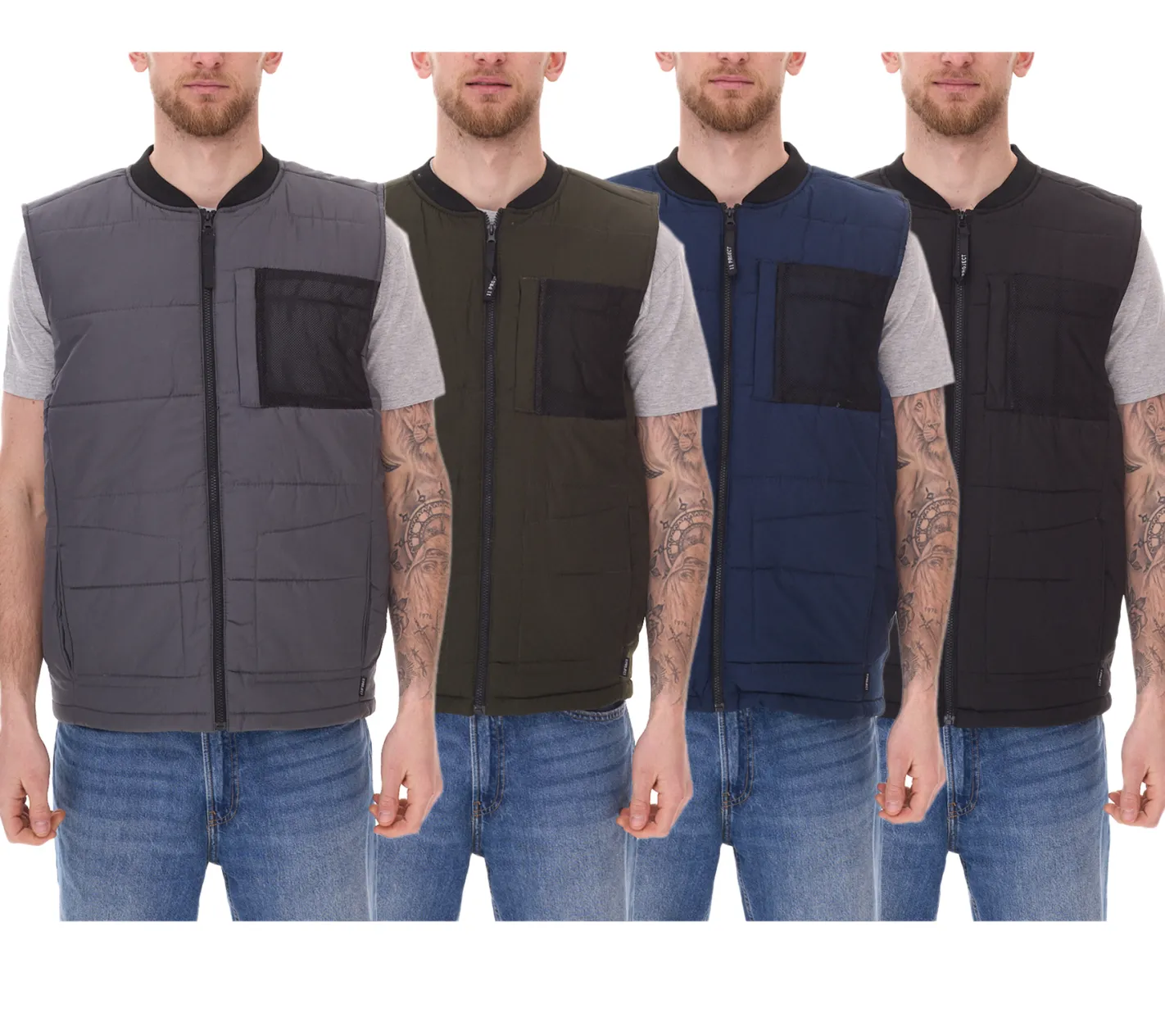 11 PROJECT PURlle Herren Puffer-Weste mit Steppung Lifestyle-Weste 20715253-ME Grau, Dunkelgrün, Dunkelblau oder Schwarz