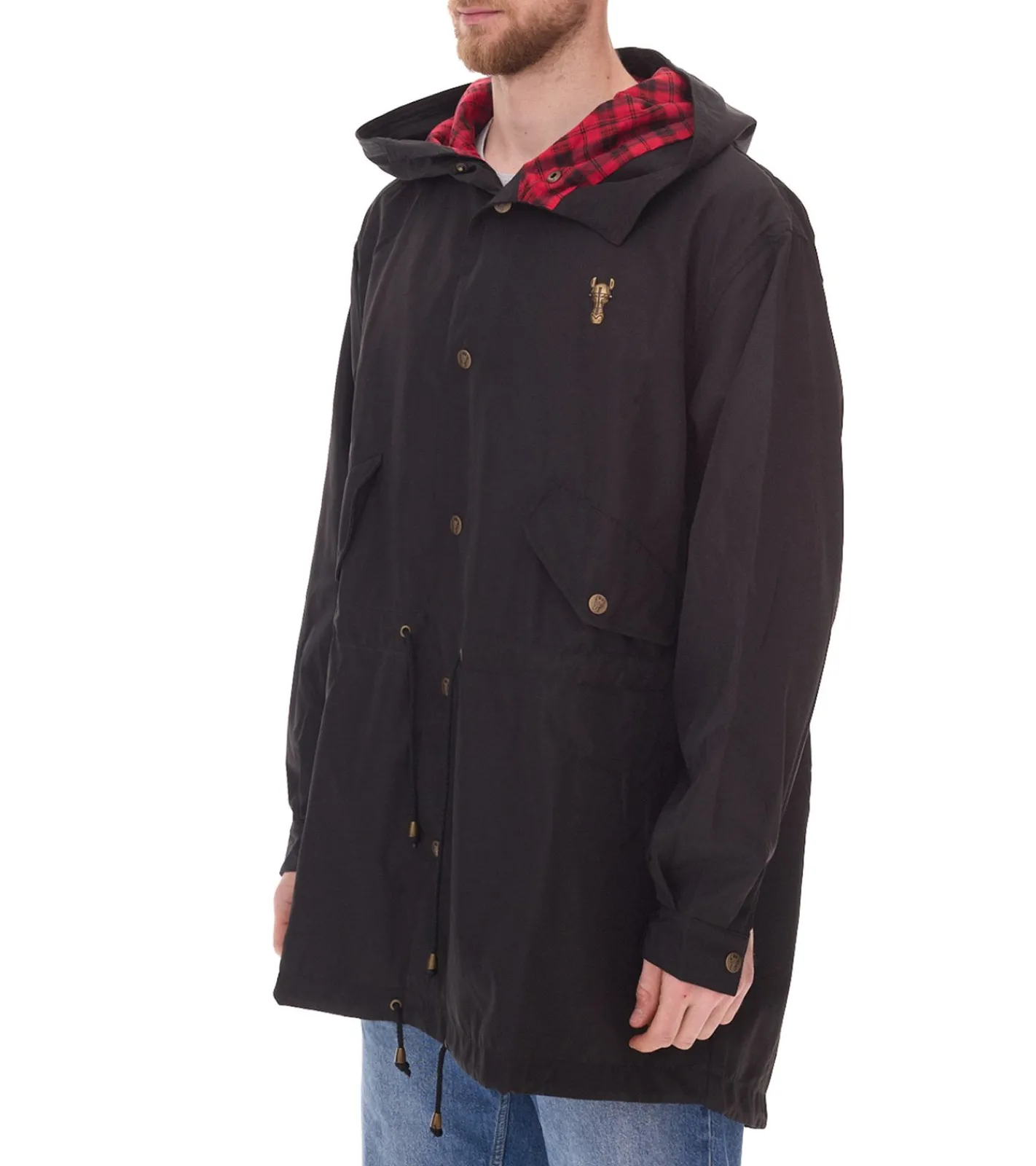 - weite Kapuze mit Druckknopfverschluss