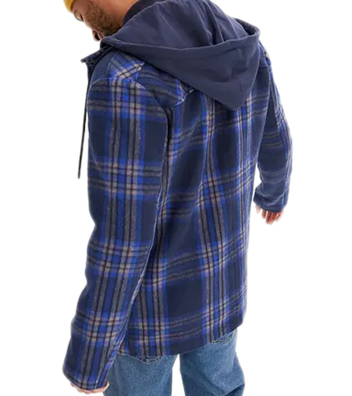 karierte Übergangs-Jacke für Herren mit Baumwollanteil Sweat-Jacke mit abnehmbarer Kapuze und Karomuster 913708 Blau