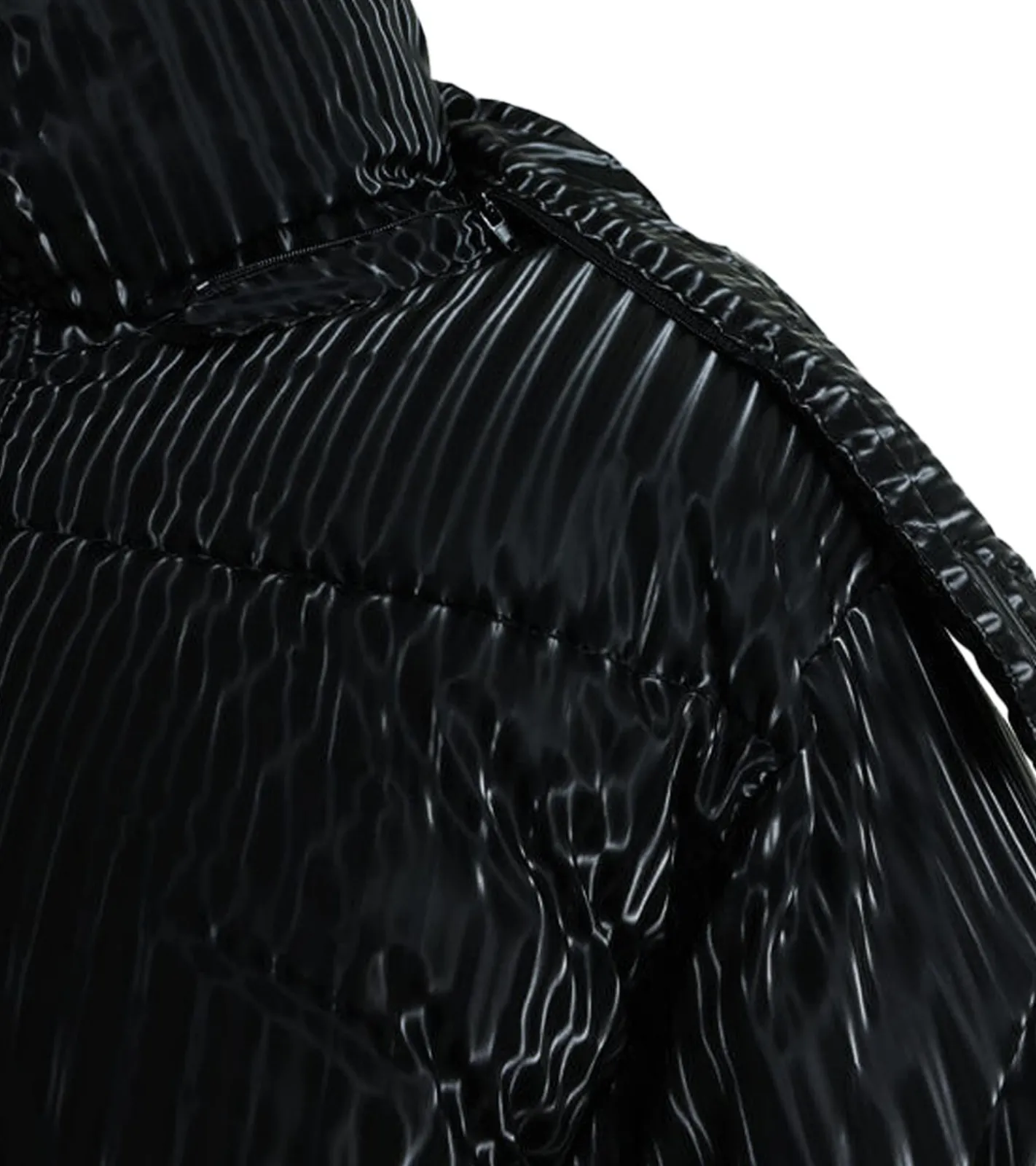 Sixth June Herren Puffer-Jacke im Oversized-Stil Winter-Jacke glänzende Outdoor-Jacke mit gewelltem Steppstoff M23360MOW Schwarz