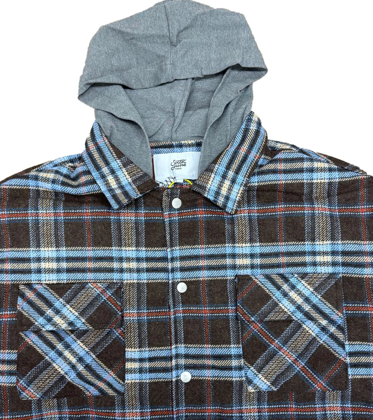 Sixth June Herren Schottenkaro-Jacke in Oversized Übergangs-Jacke mit Kapuze im Allover Karo-Muster Frühlings-Jacke N22417MOWDBRO Braun/Bunt