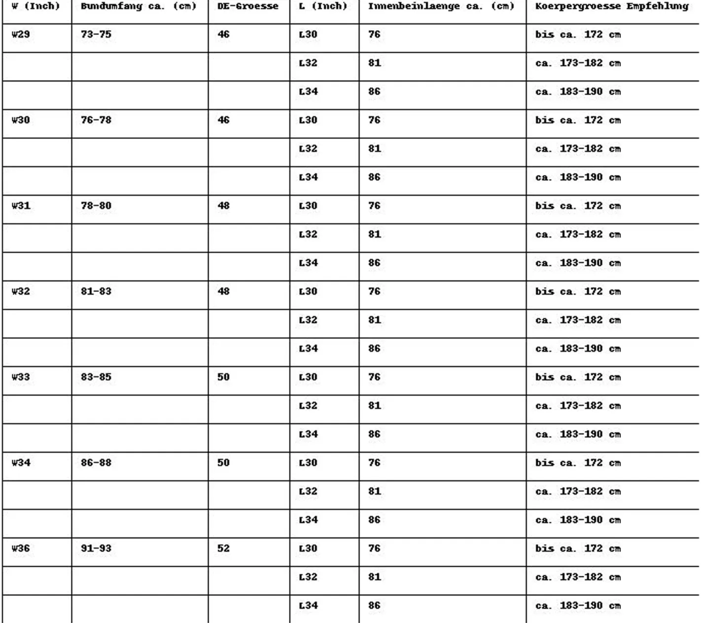 | Size | W28/L32, W29/L32, W30/L32, W31/L32, W31/L34, W32/L32, W32/L34, W33/L32 |