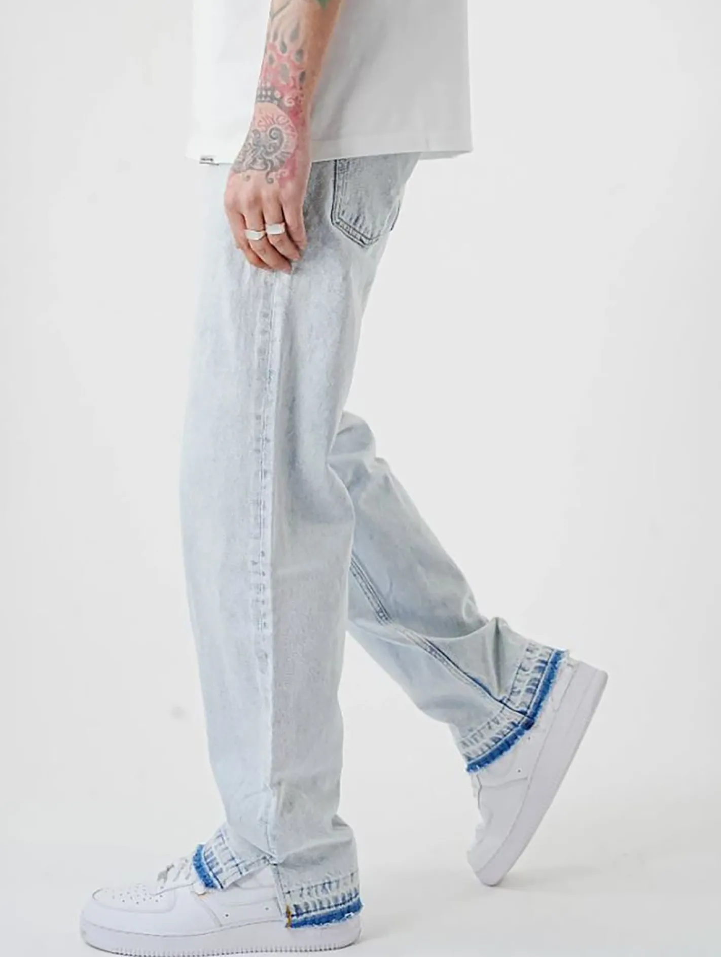UNEFFECTED Weite Free Cut Loose Fit Jeans hellblau