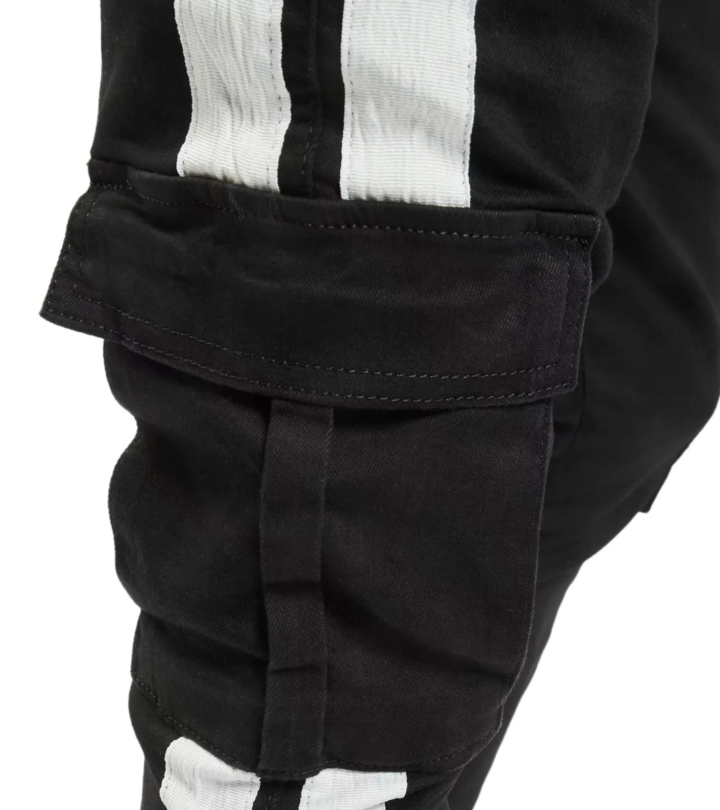 vsct Keanu Mega Stripe Herren Cargo-Hose mit seitlichen Streifen Jeans mit Beintaschen Denim D5642800 Schwarz