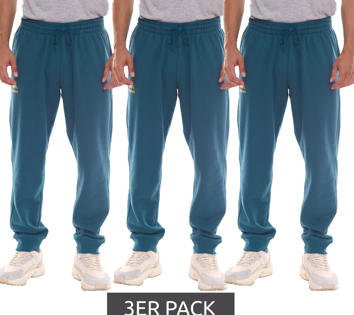 3er Pack Kappa Dragonfly Herren Jogging-Hose Sweat-Hose mit Logo-Print und elastischem Ripp-Beinabschluss 710662 Petrolblau