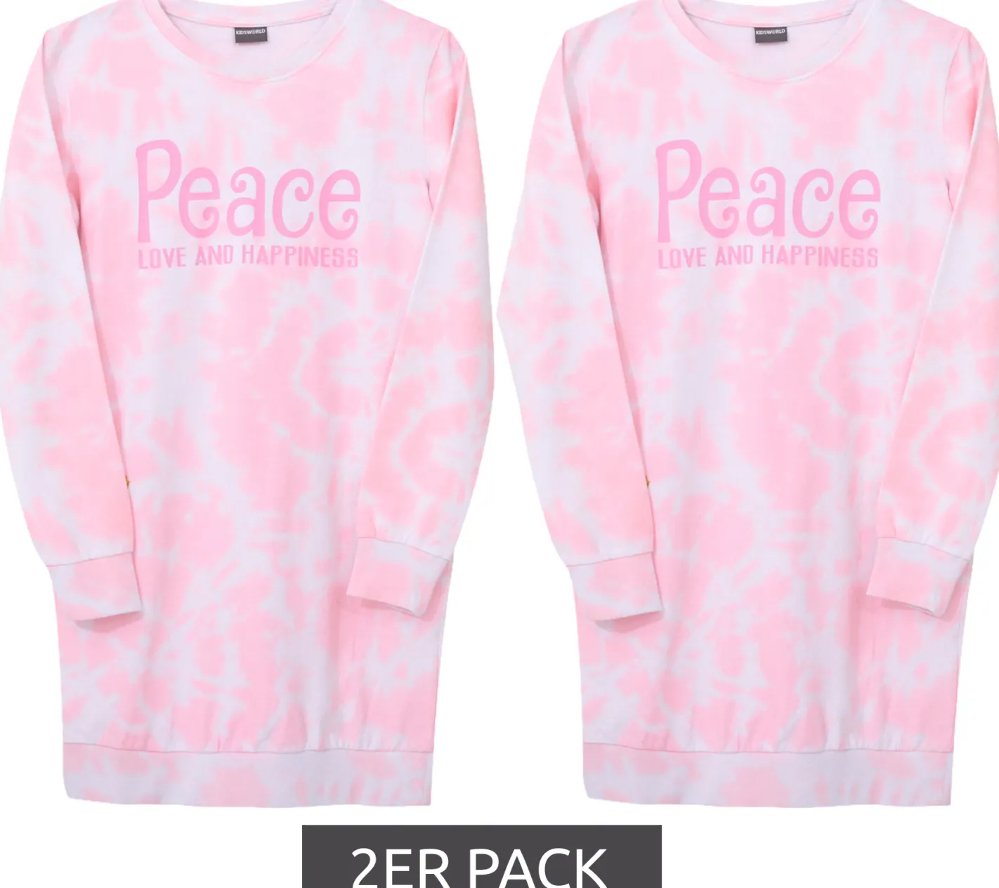 2er Pack KIDSWORLD Mädchen Pullover-Kleid mit Allover-Batik-Print Sweat-Kleid 55037912 Rosa/Weiß