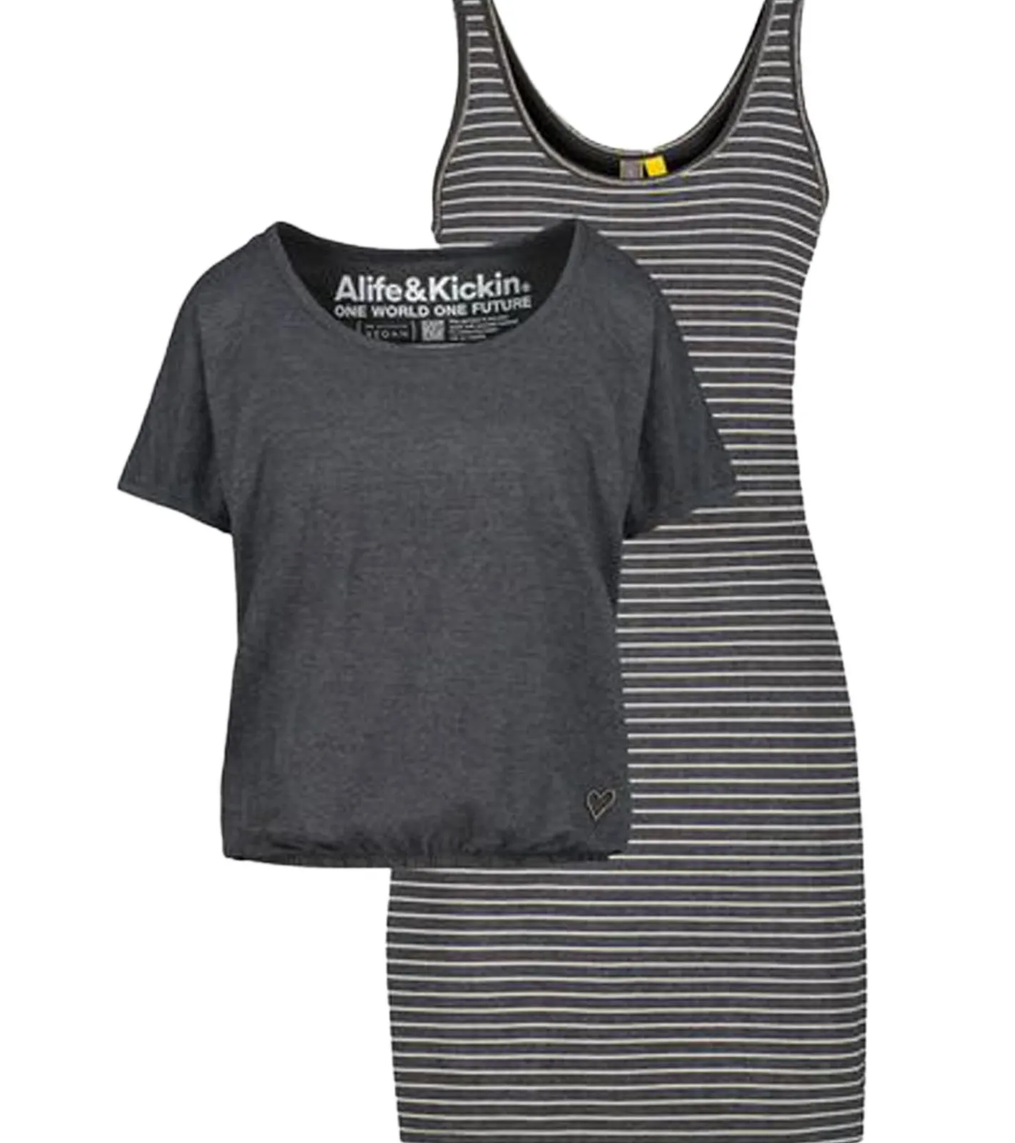 ALIFE AND KICKIN Sunny Damen Set Shirt und Mini-Kleid gestreiftes Jersey-Kleid 65096421 Grau/Weiß